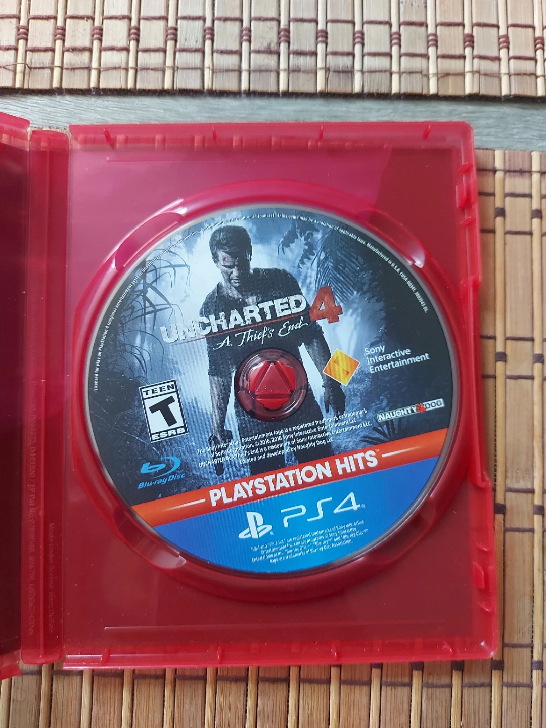 This is the PlayStation Hits edition of Uncharted 4: A Thief's End for PS4. It's a Blu-ray disc game. It's rated T for Teen.