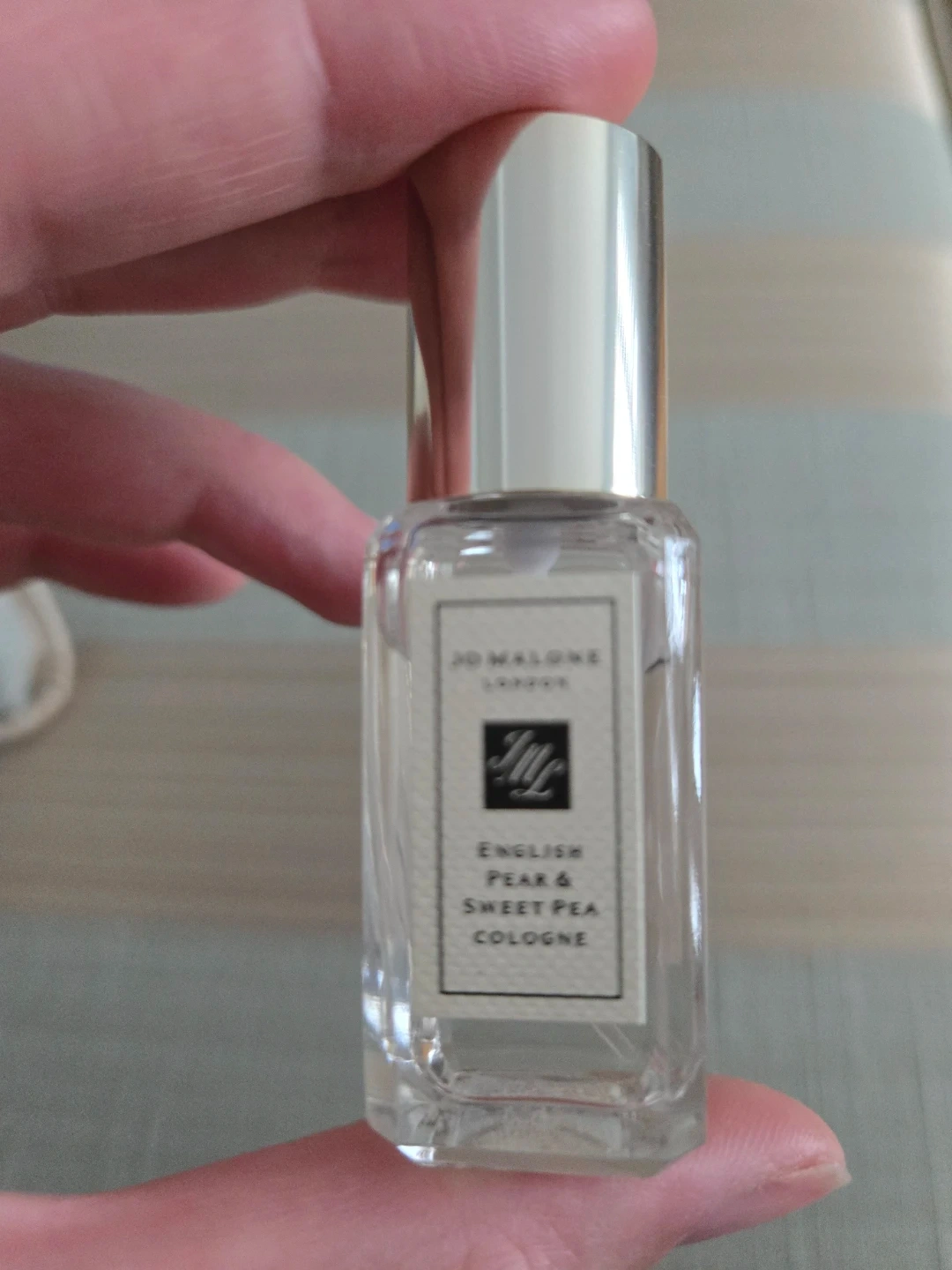 Jo Malone London English Pear & Sweet Pea cologne. It's a small travel-size bottle (9ml). Great for trying out the scent!