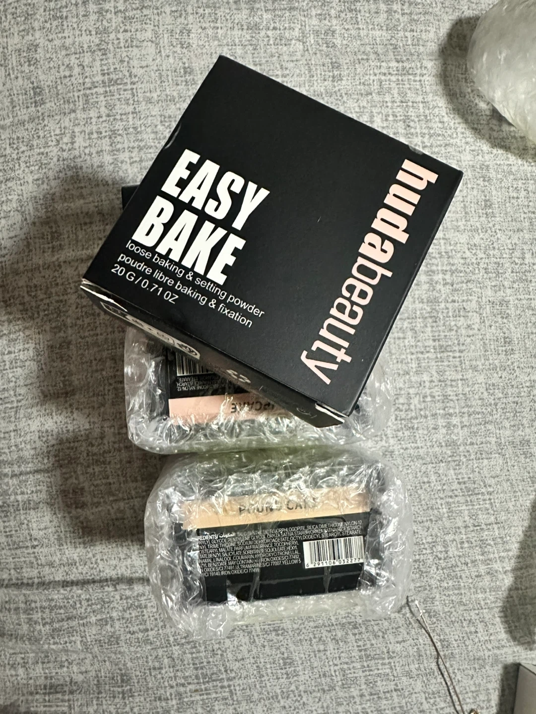 Set of four Huda Beauty Easy Bake Loose Baking & Setting Powders. Includes shades pound cake, 'Cupcake', and Each powder is 20g / 0.71 oz.
