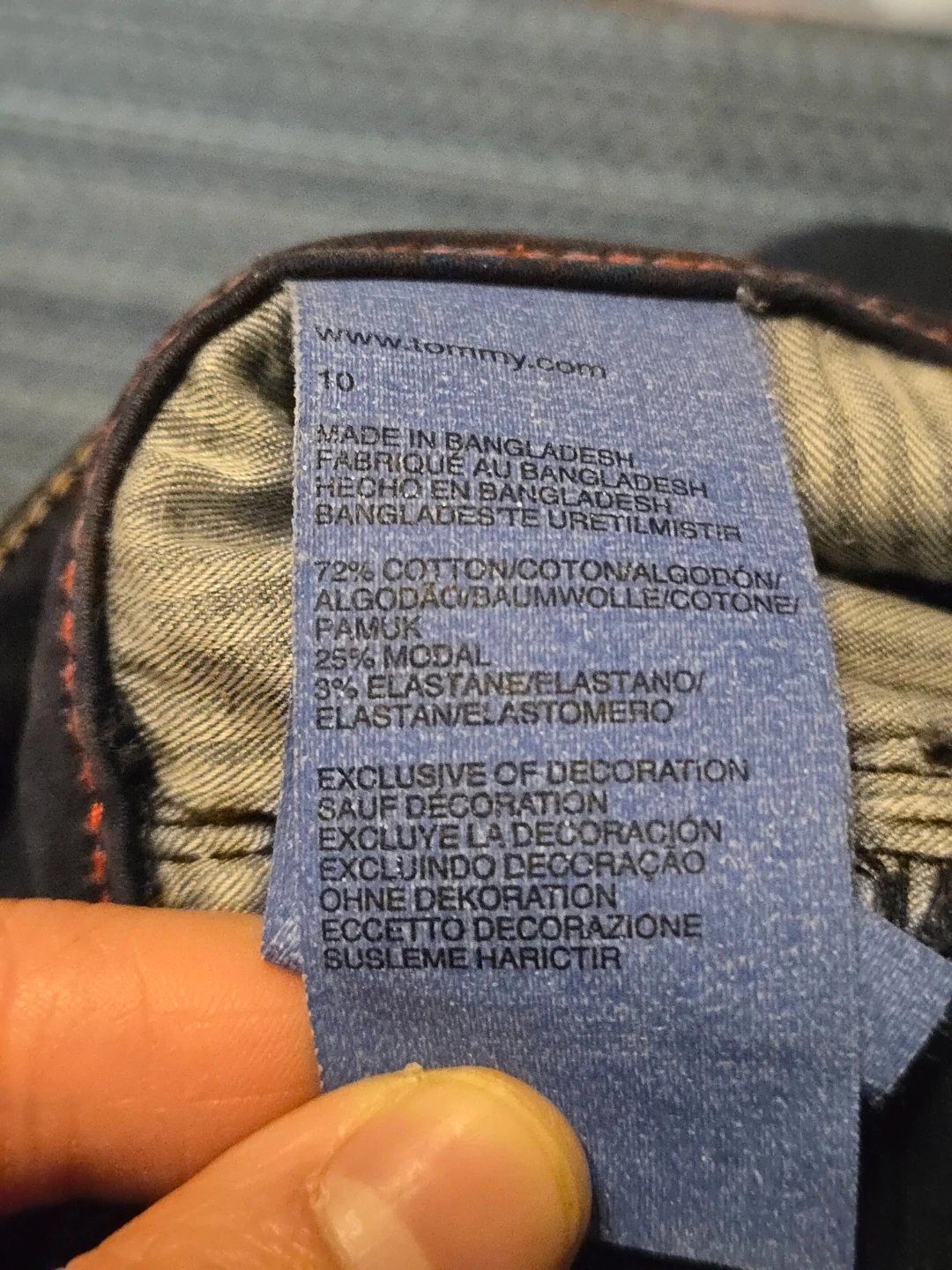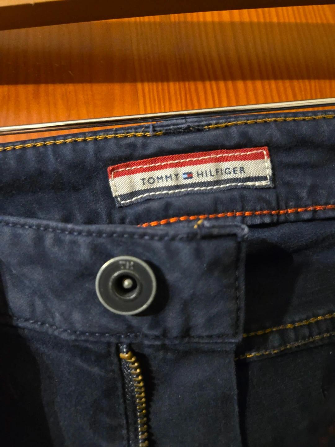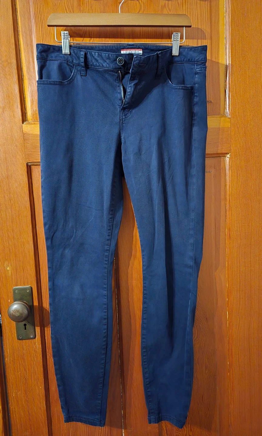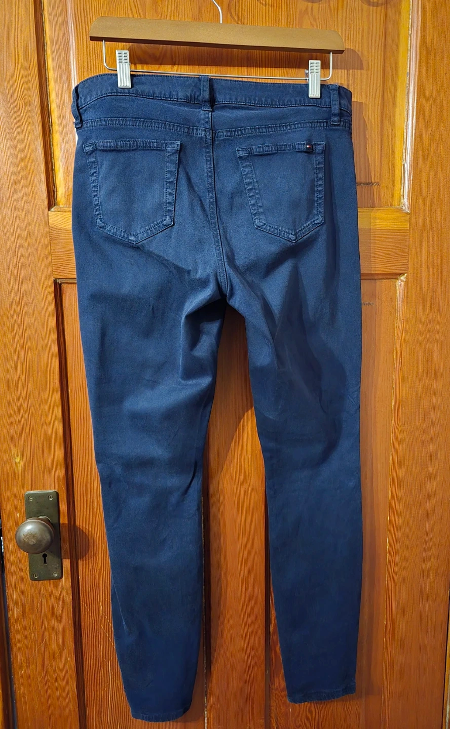 Tommy Hilfiger navy pants/jeggings (though they are not denim!), size 10 on the tag though I would say it would likely be better for a size 8! They are plain in colour with no decoration or visible logo on them.