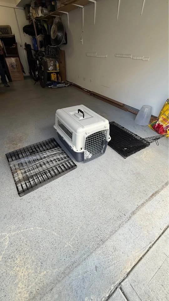 We used this for our corgi for about 7 months and no longer have a need for it. Most pieces are new with very few scratches. Take all for $100. Can be bought separately: Play pen - $45, Foldable crate - $95, Travel Crate - $50.