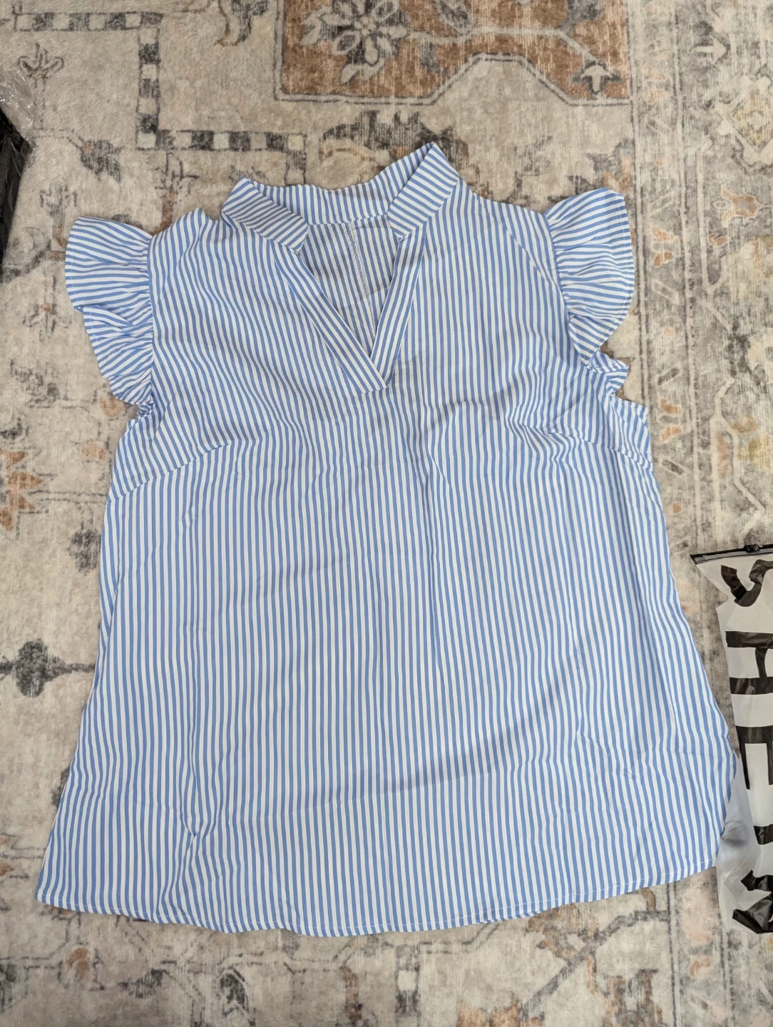 NEW Blue and White Striped Blouse with Flutter Sleeves