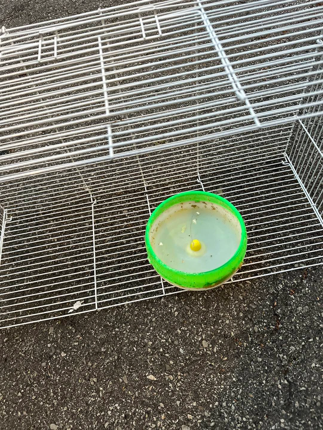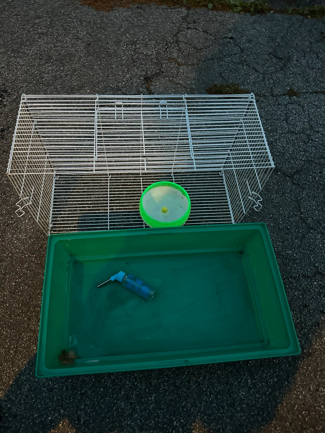 It’s median size 16 by 16 by 28 inch hamster cage. Cleaned Witt Lysol wipes.