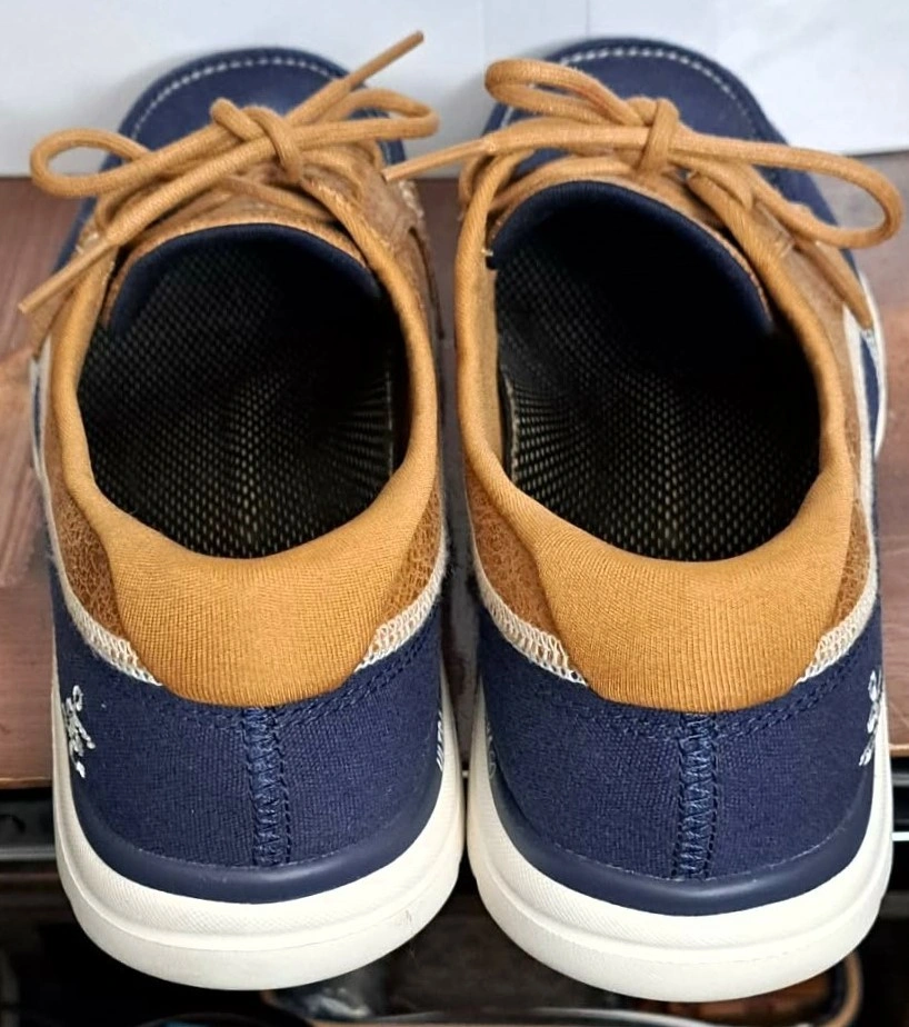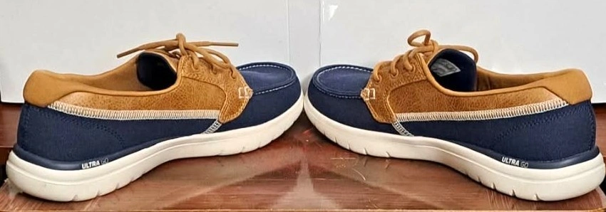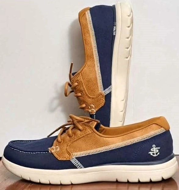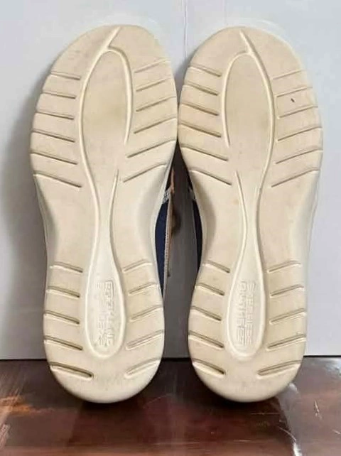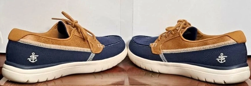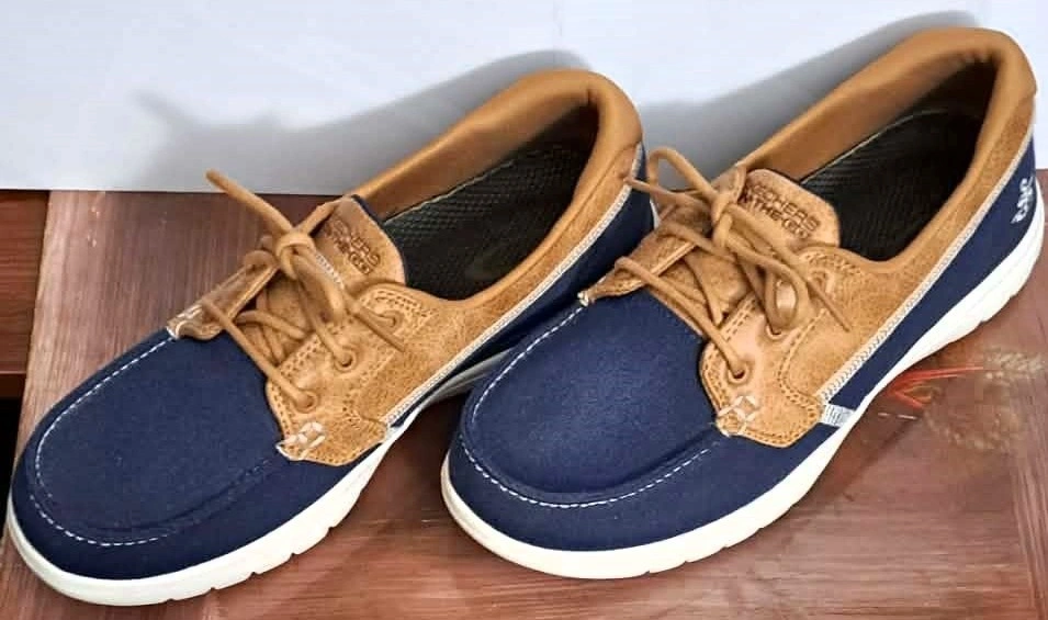 A perfect blend of nautical style and innovative comfort technology, these Skechers On-the-GO Flex - Embark shoes are designed for all-day wear. Whether you're by the water or out and about, they offer excellent support and a timeless look. Easy to wear with a traditional boat shoe lacing system for a secure, customizable fit. The soft woven canvas fabric upper provides a lightweight feel and enhanced flexibility. These shoes are machine washable; simply wash on a gentle cycle in cold water and air dry. Flexible traction outsole. The insoles were replaced with Orthopedic Arch Support Insoles with Shock-Absorbing Gel Pads (X-2 Material) for enhanced comfort [Photo 12]. Pre-owned but in excellent condition, no visible creases, scratches, scuffs and very light discoloration. Please check photos