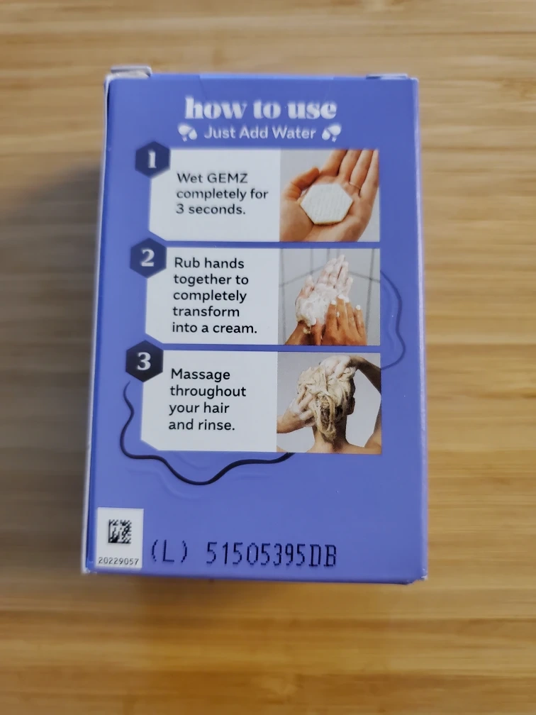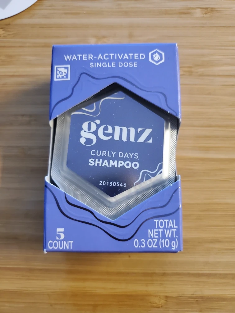 Gemz Curly Days water-activated single-dose shampoo. Includes 5 count, 0.3 oz (10g) total net wt. Just add water to activate and create a creamy lather for your hair. Convenient for travel or single use!