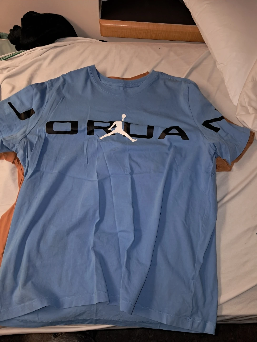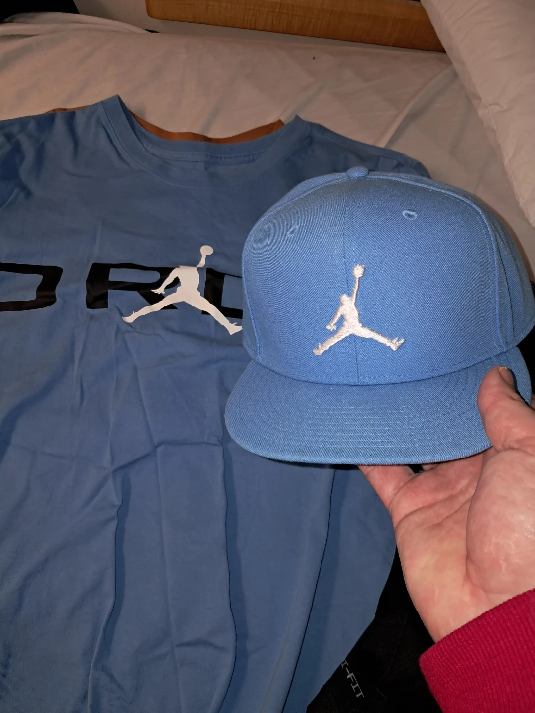 This is a blue Jordan t-shirt and matching cap. Both items feature the iconic Jumpman logo. They're a great set for any fan! 40 for both