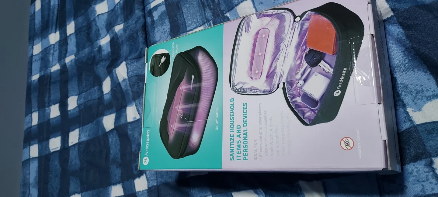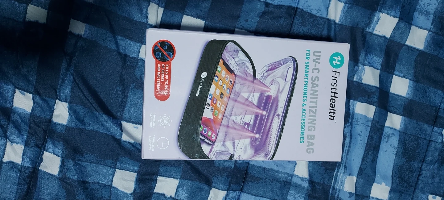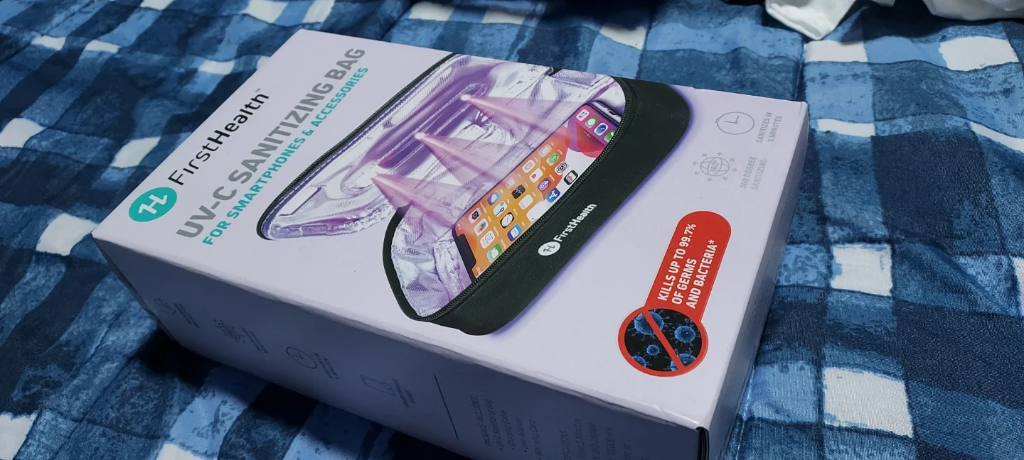 This FirstHealth UV-C sanitizing bag is designed for smartphones and personal items. It claims to kill up to 99.7% of germs and bacteria. Sanitization takes only 5 minutes.