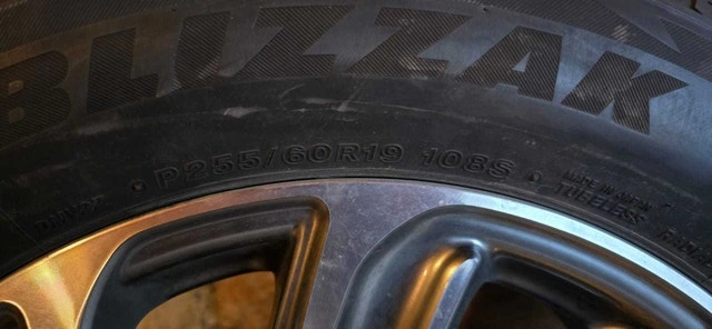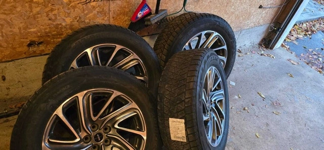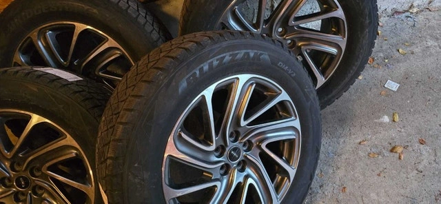 Set of 4 Bridgestone Blizzak winter tires and original Lincoln rims for a 2020 Aviator Reserve. Tire size is P255/60R19. TPMS sensors are included. The tires have approximately 5.5mm of tread remaining and would likely need to be replaced soon. Located in Durham.