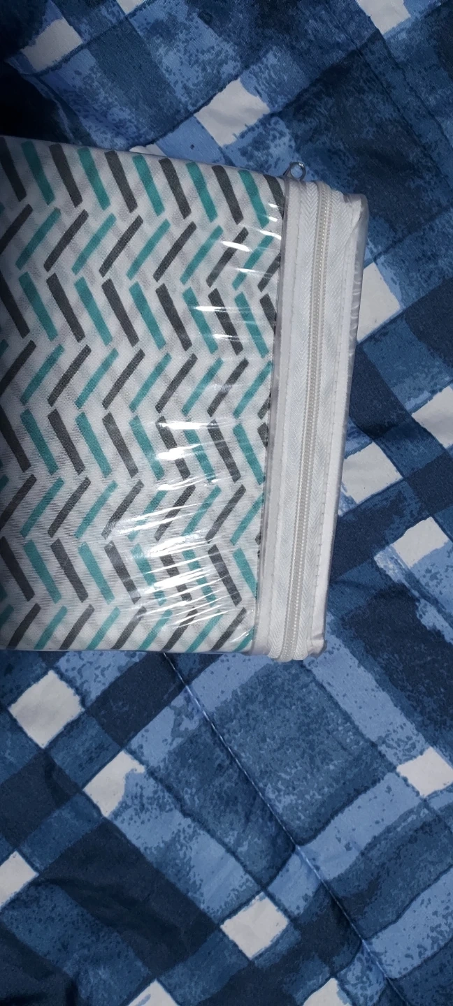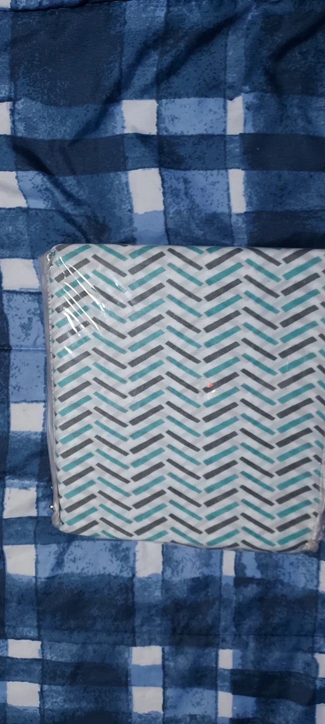 This zippered pillowcase features a modern chevron pattern in teal, gray, and white. It's made from a durable fabric and zips closed for easy insertion and removal. Great for protecting your pillows or adding a decorative touch! TWIN size