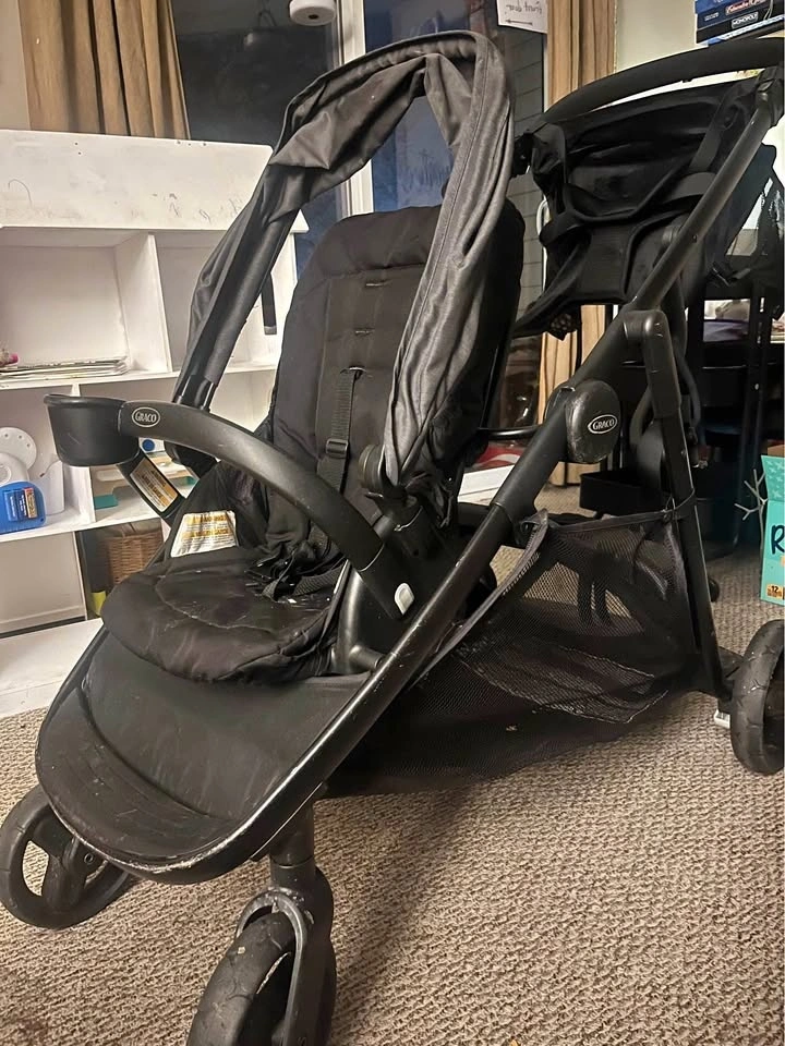 This Graco double stroller has lots of life left. The only issue is the canopy, which is broken and taped, as shown in the last picture. It still works and functions as it should. Selling because my kids have outgrown it.