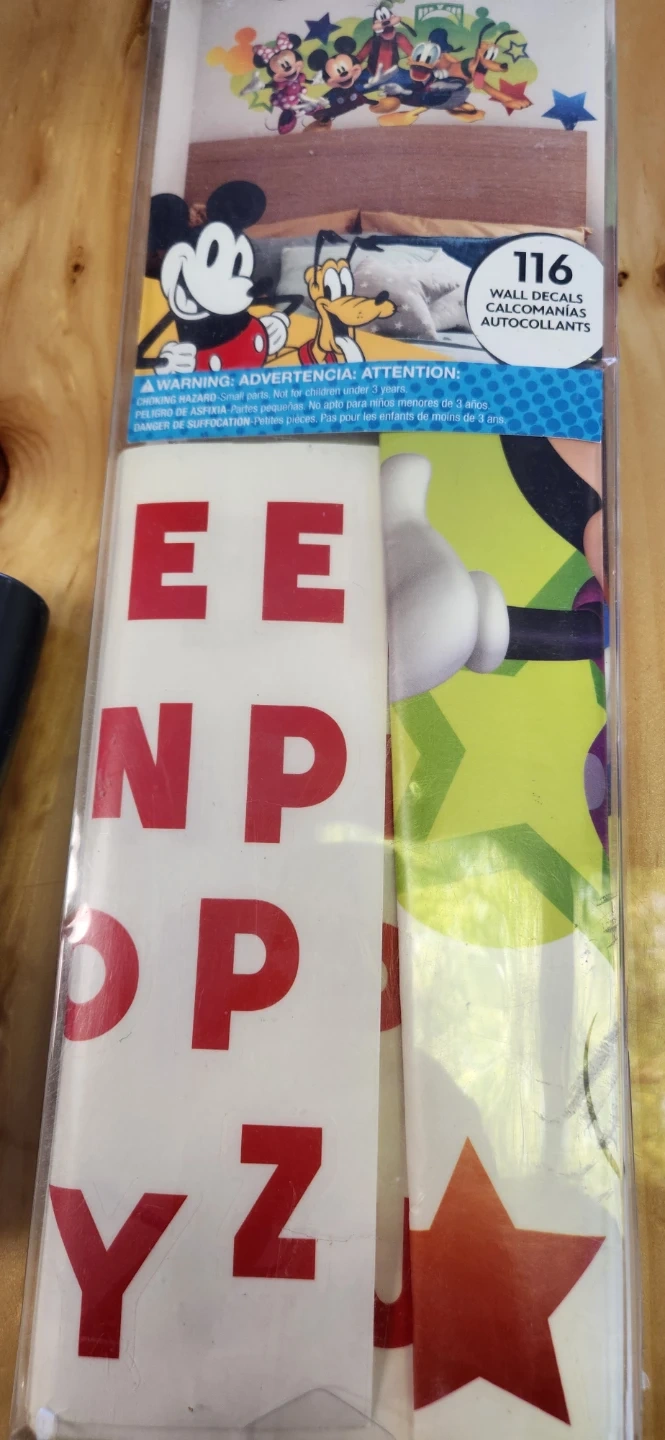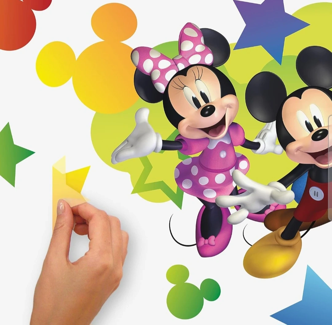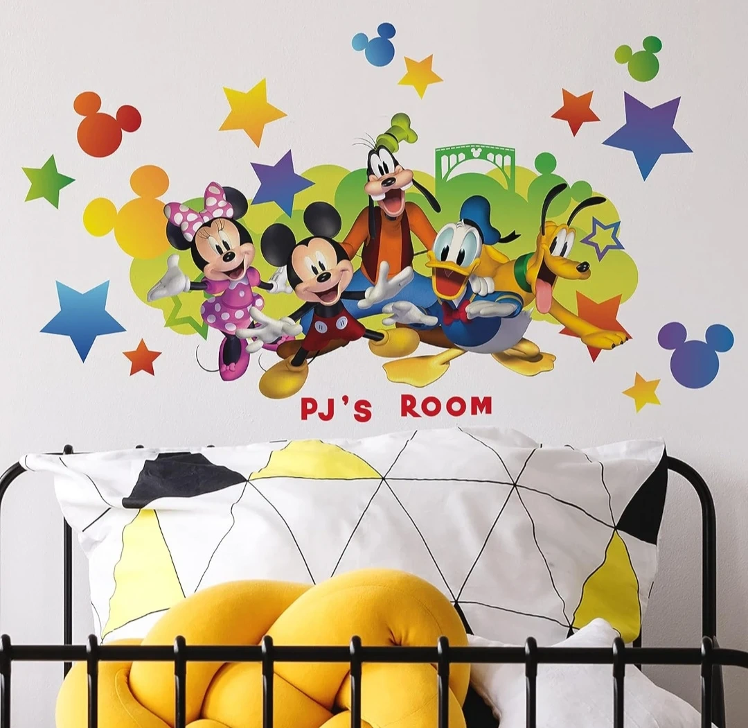 Add some Disney magic to any room with these fun Mickey Mouse and Friends wall decals! This set includes 116 decals featuring Mickey, Minnie, Goofy, Donald, and Pluto, plus colourful stars and Mickey heads. They're easy to apply and reposition, perfect for a nursery or playroom!