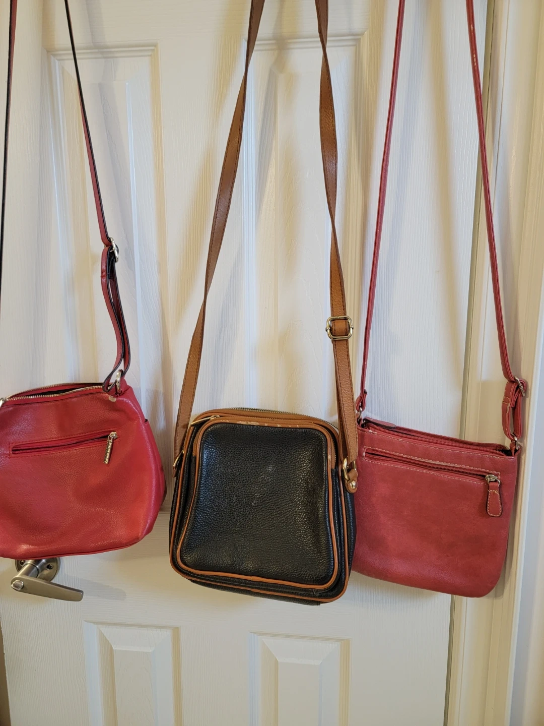 Red Crossbody Purses (2) and Black/Brown Shoulder Bag (1)