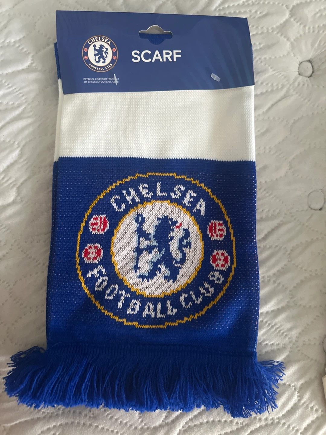 Cheer on your favourite team with this official Chelsea Football Club scarf. It features the iconic club crest and traditional blue and white colours with fringe detailing. A must-have for any dedicated fan! Also comes with tag