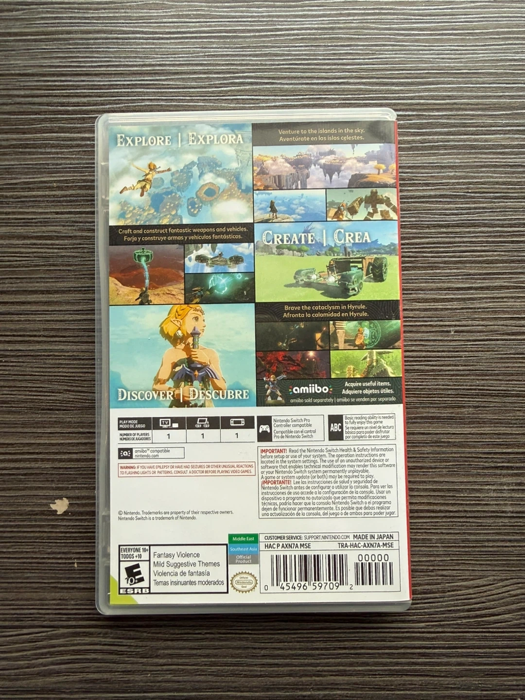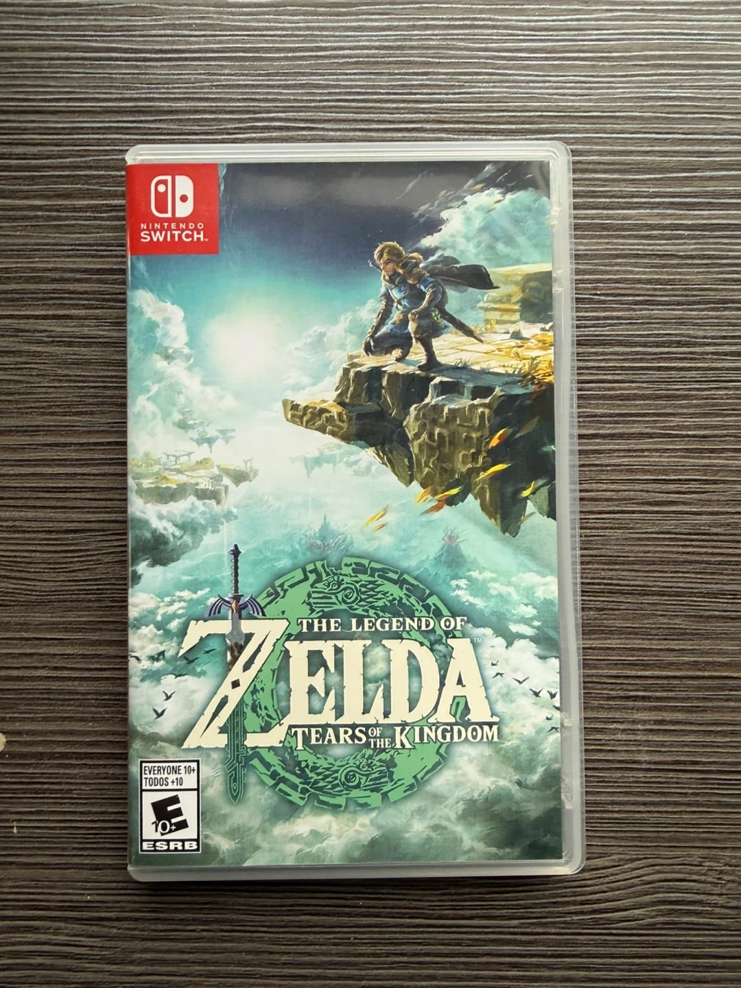 This is The Legend of Zelda: Tears of the Kingdom for Nintendo Switch. It's an action-adventure game set in the skies and land of Hyrule. Explore vast landscapes and construct fantastic weapons and vehicles!