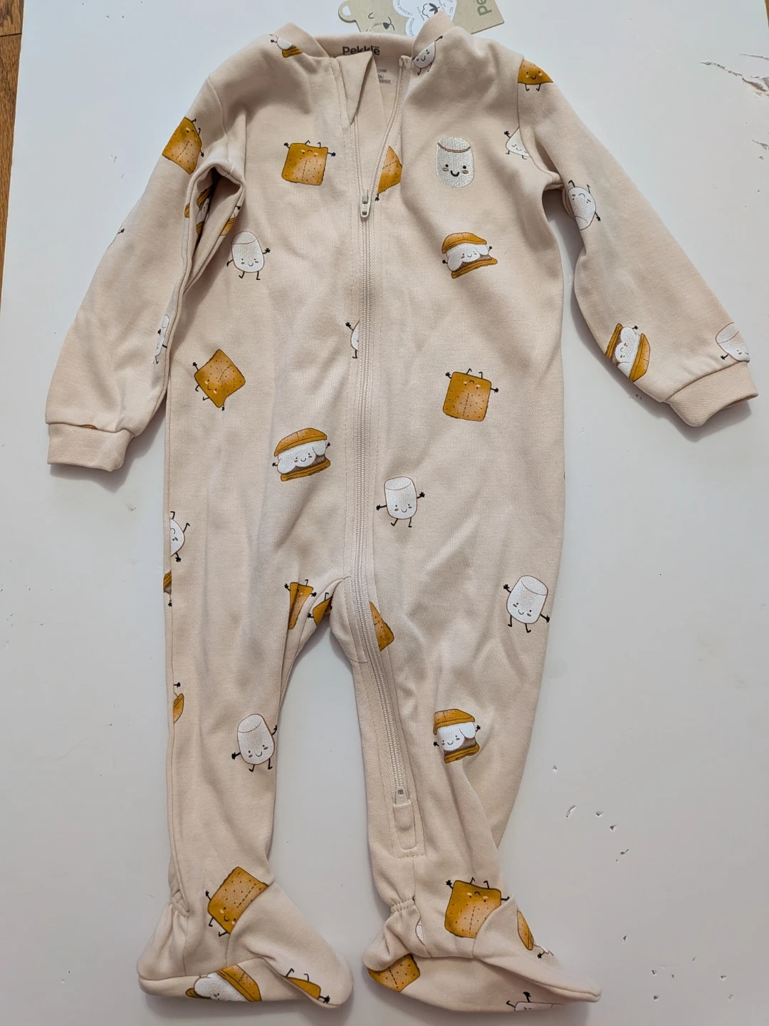 NEW This adorable Pekkle sleepsuit 9 month features a fun s'mores graphic print. It's made with organically grown cotton for comfort. Perfect for cozy nights!