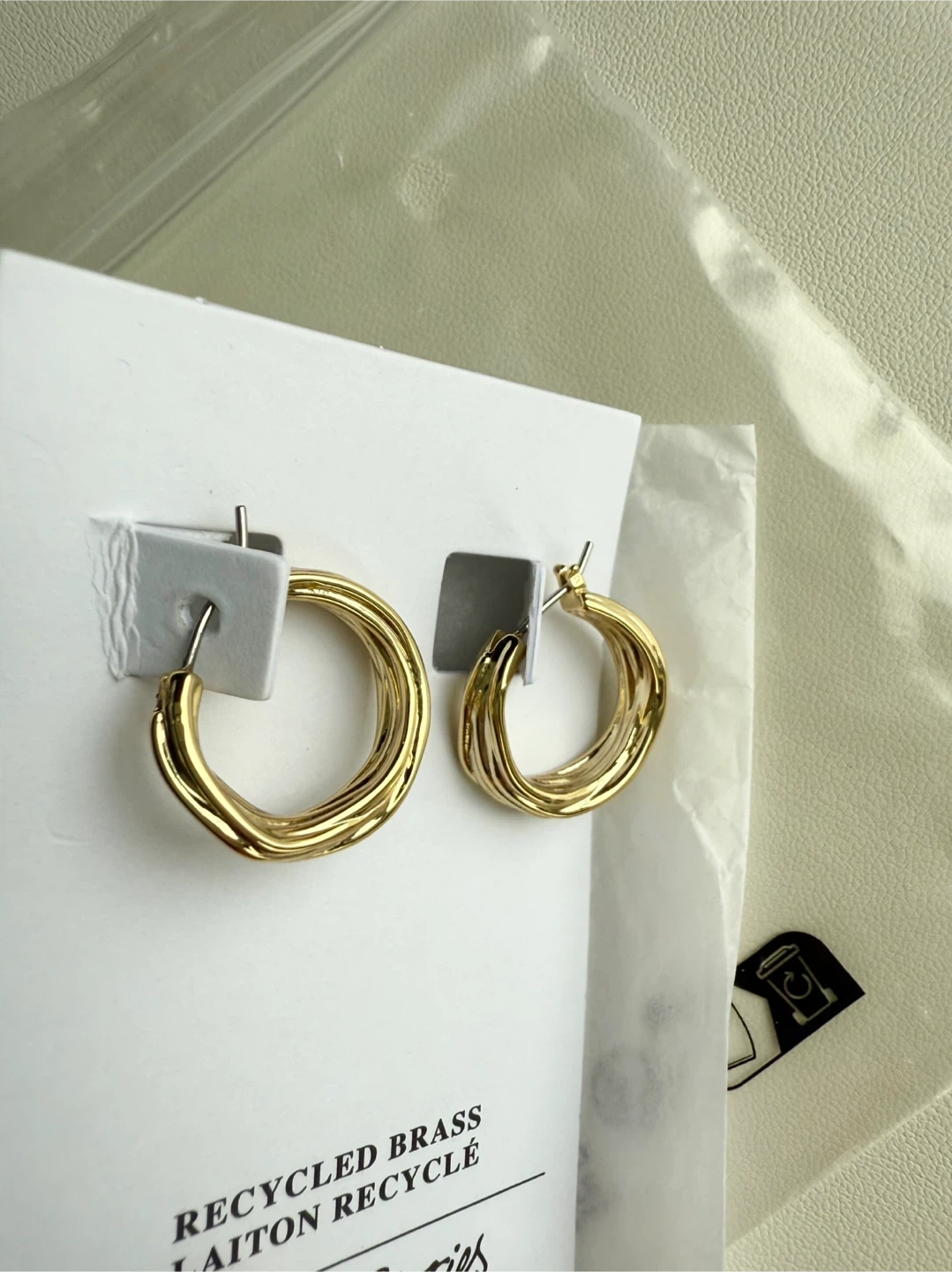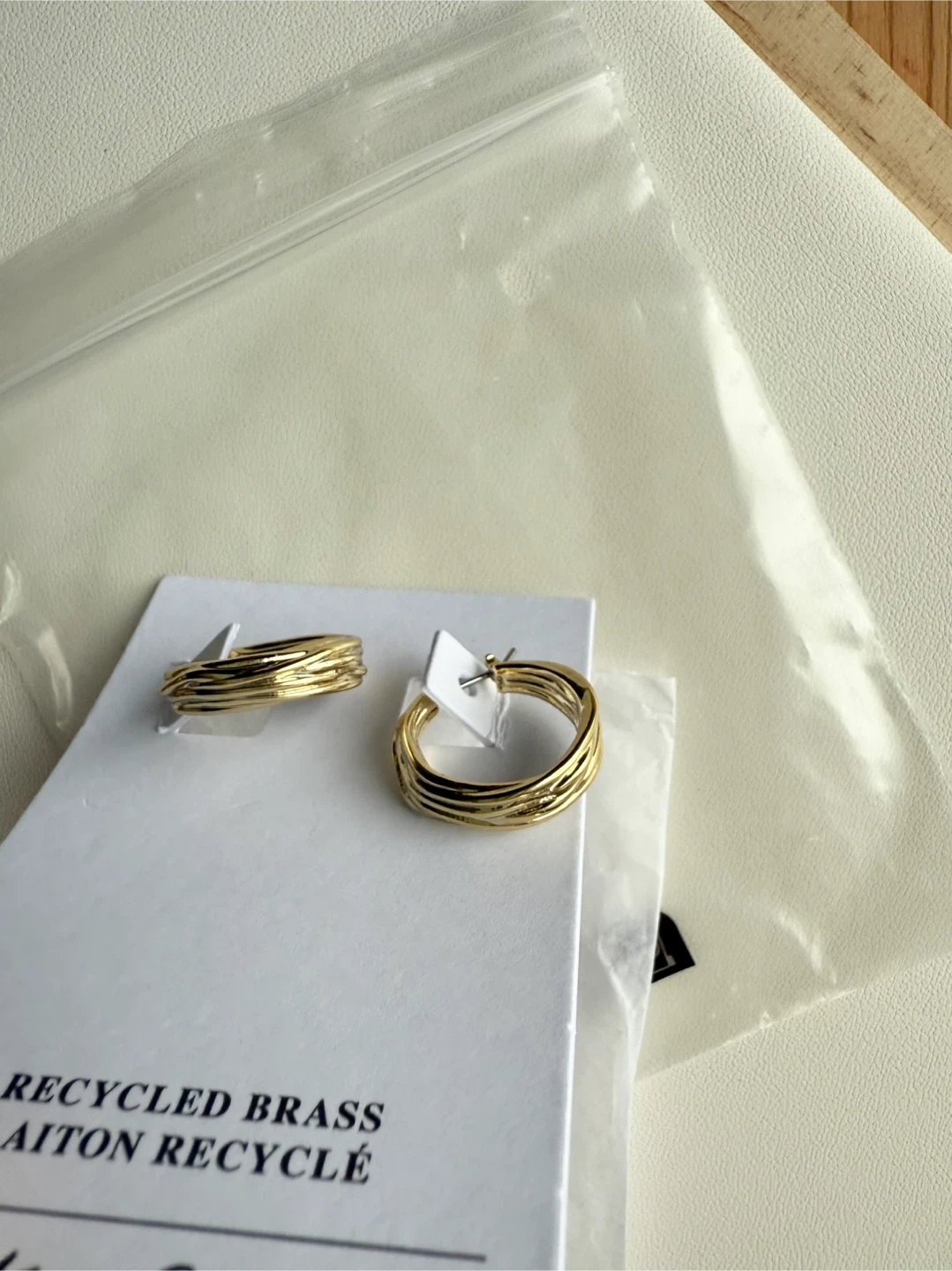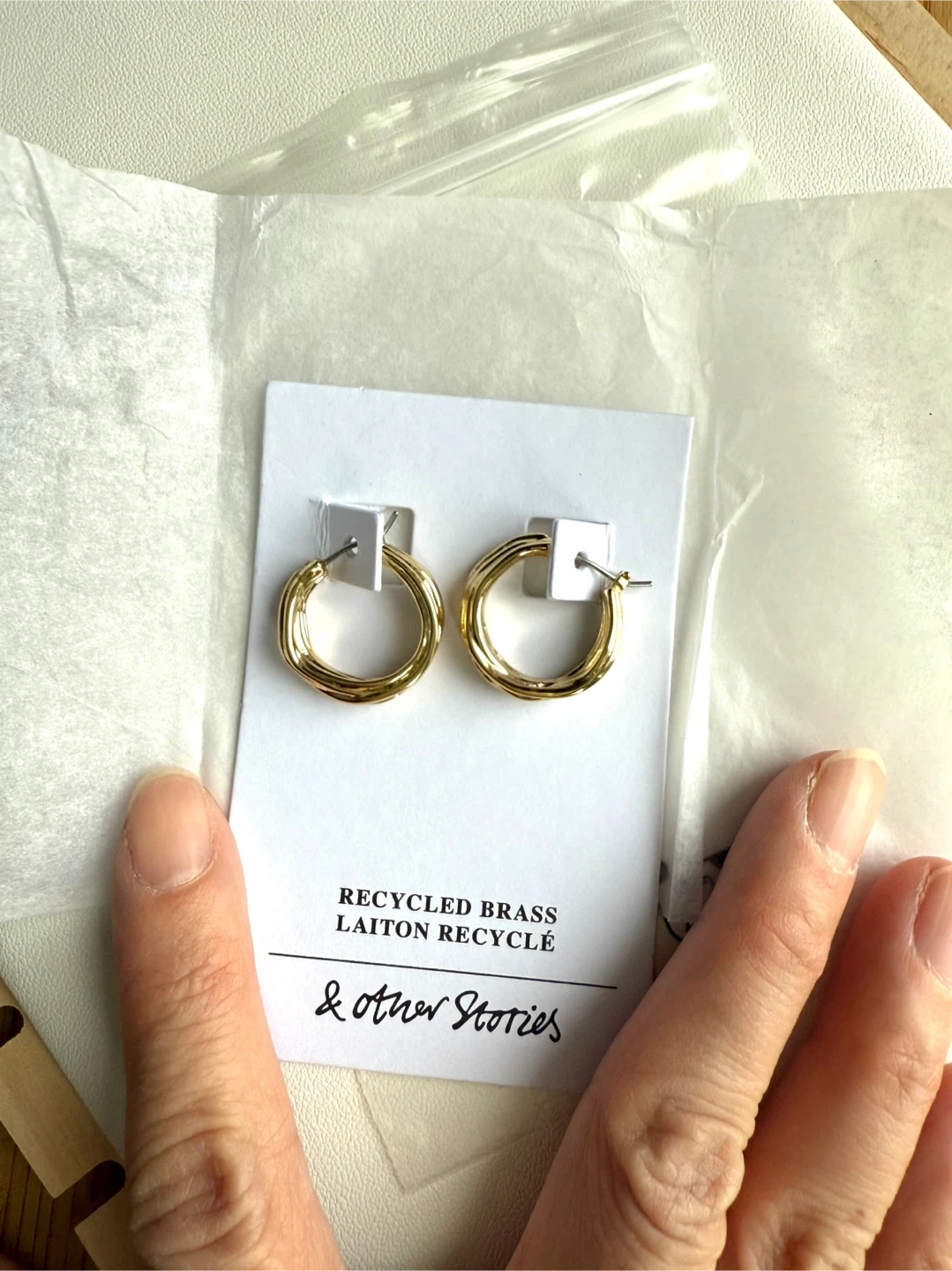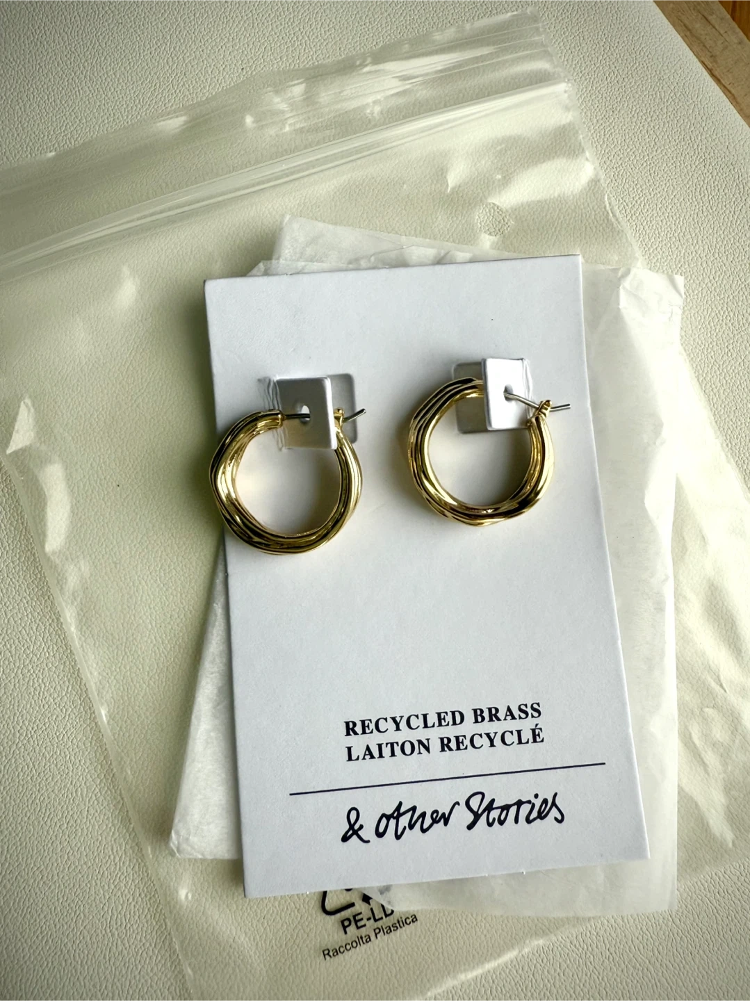 These & Other Stories hoop earrings feature a twisted design. They're made from recycled brass and have a gold tone. Perfect for adding a stylish touch to any outfit!