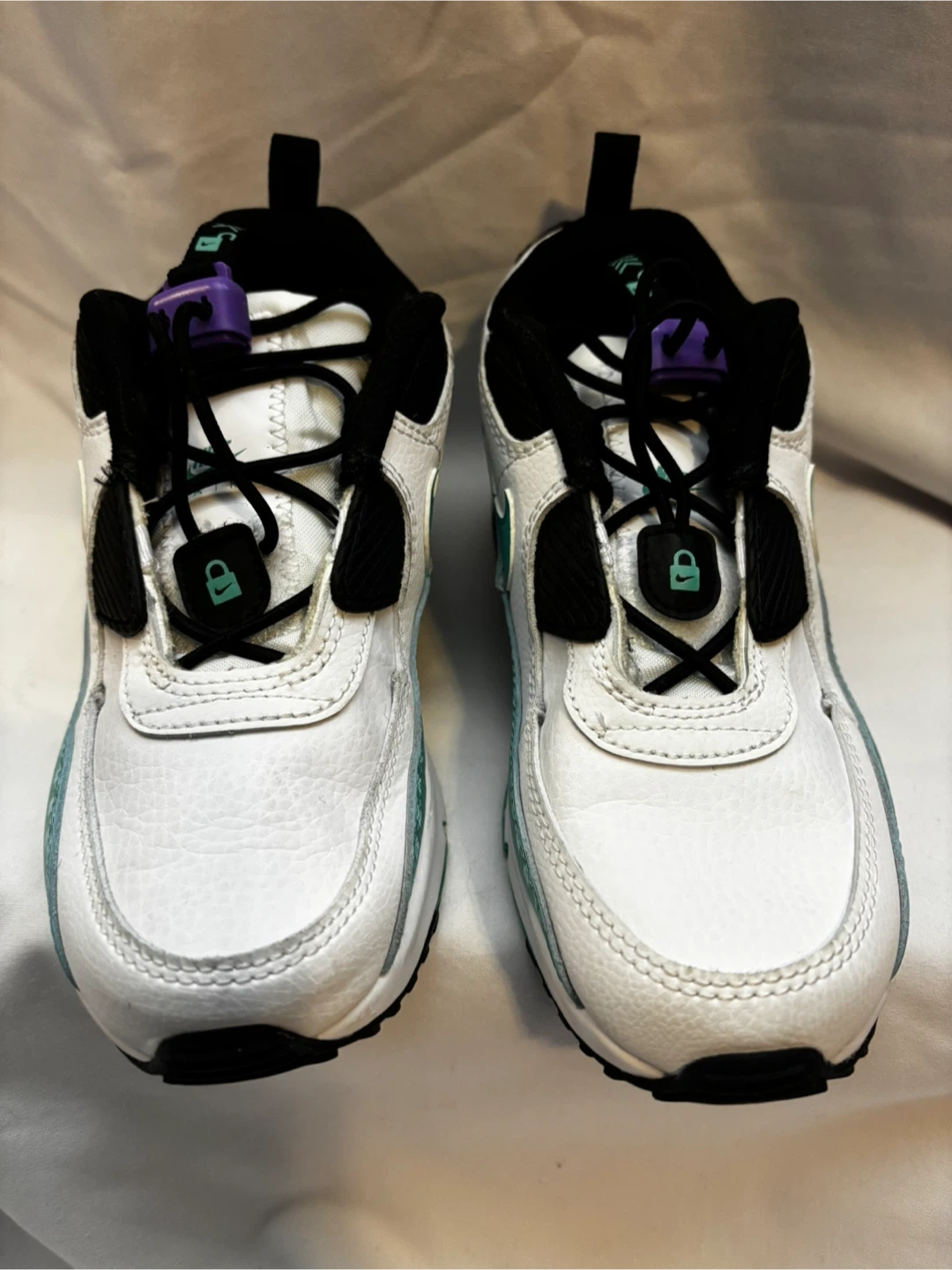 Nike Air Max 90 Toggle SE Sneaker - Size 2.5Y. Please note one of the toggles has come off the attachment however it still velcros, please see photos. $15 cash, porch pick up Kennedy and Eglinton.