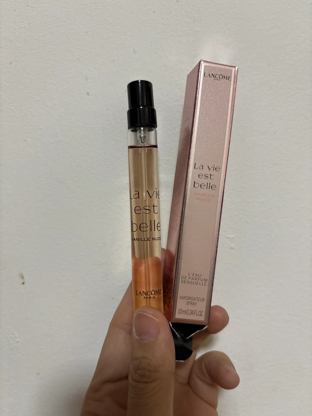 This is a travel-size spray of Lancome's La Vie Est Belle Vanille Nude fragrance. It's the Eau de Parfum Sensuelle version. The bottle contains 10ml or 0.34 fl.oz. of product. It's a great size for carrying in a purse or for travel!