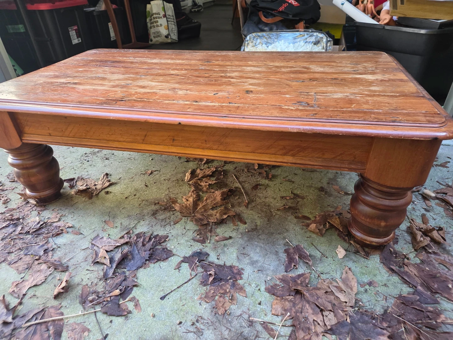 Gorgeous solid coffee table!! Bought for a DIY project that never happened. Someone else’s turn now.