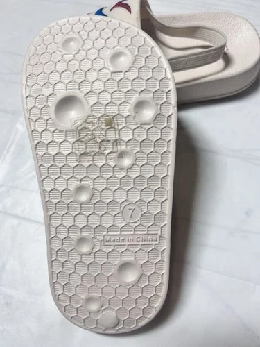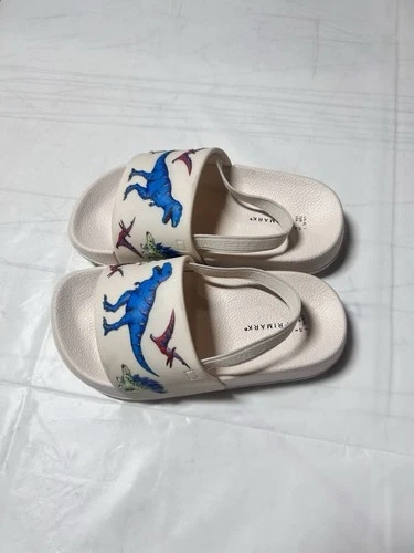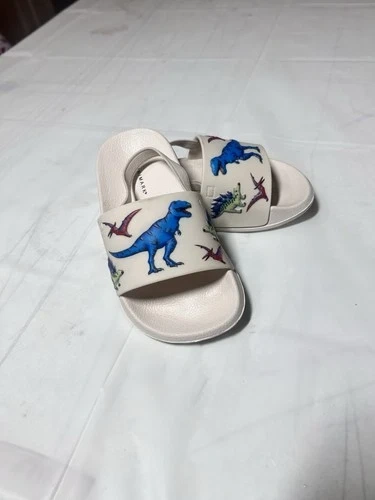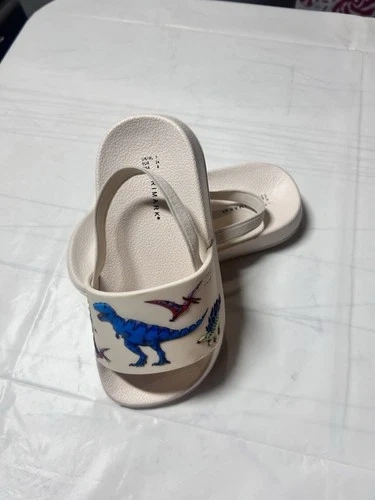 The Primark baby flip-flop sandals with a beige dinosaur print are perfect for summer and spring days at the beach. Featuring a slip-on closure and a comfortable rubber outsole, these sandals are easy to put on and ideal for casual occasions. The unisex toddler size 7 sandals have a unique animal print design with strap accents, making them both stylish and practical for active little ones. Made with blended fabric and synthetic upper material, these flip flop sandals are a must-have addition to your child's summer wardrobe.