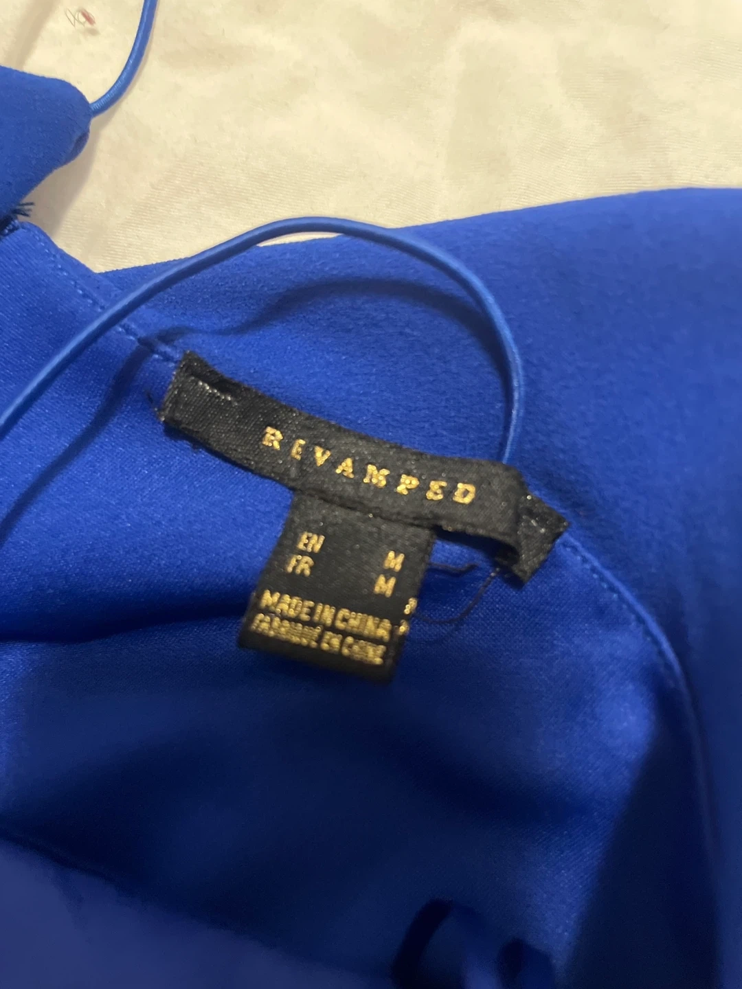 A stylish royal blue dress from Revamped. It features a flattering ruffle detail and a sheer panel at the waist. This dress is size medium and made in China. Perfect for a night out!