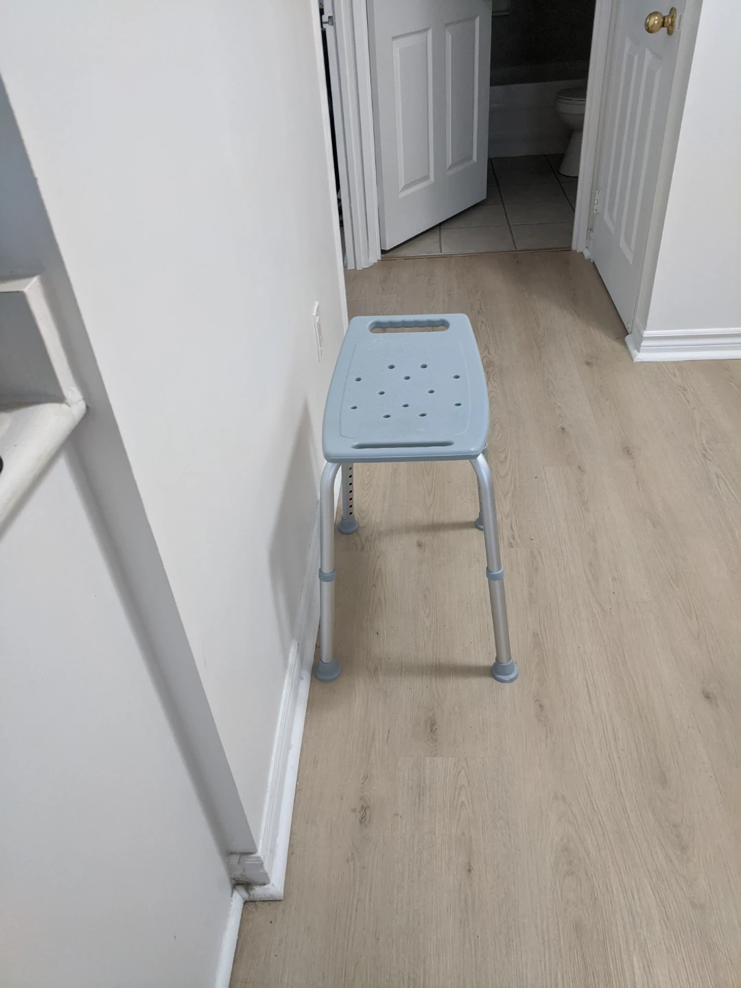 This shower chair stool is designed for safety and comfort in the bath or shower. It features adjustable height legs for a customized fit. The sturdy construction provides reliable support. Great for anyone needing a little extra stability in the washroom!