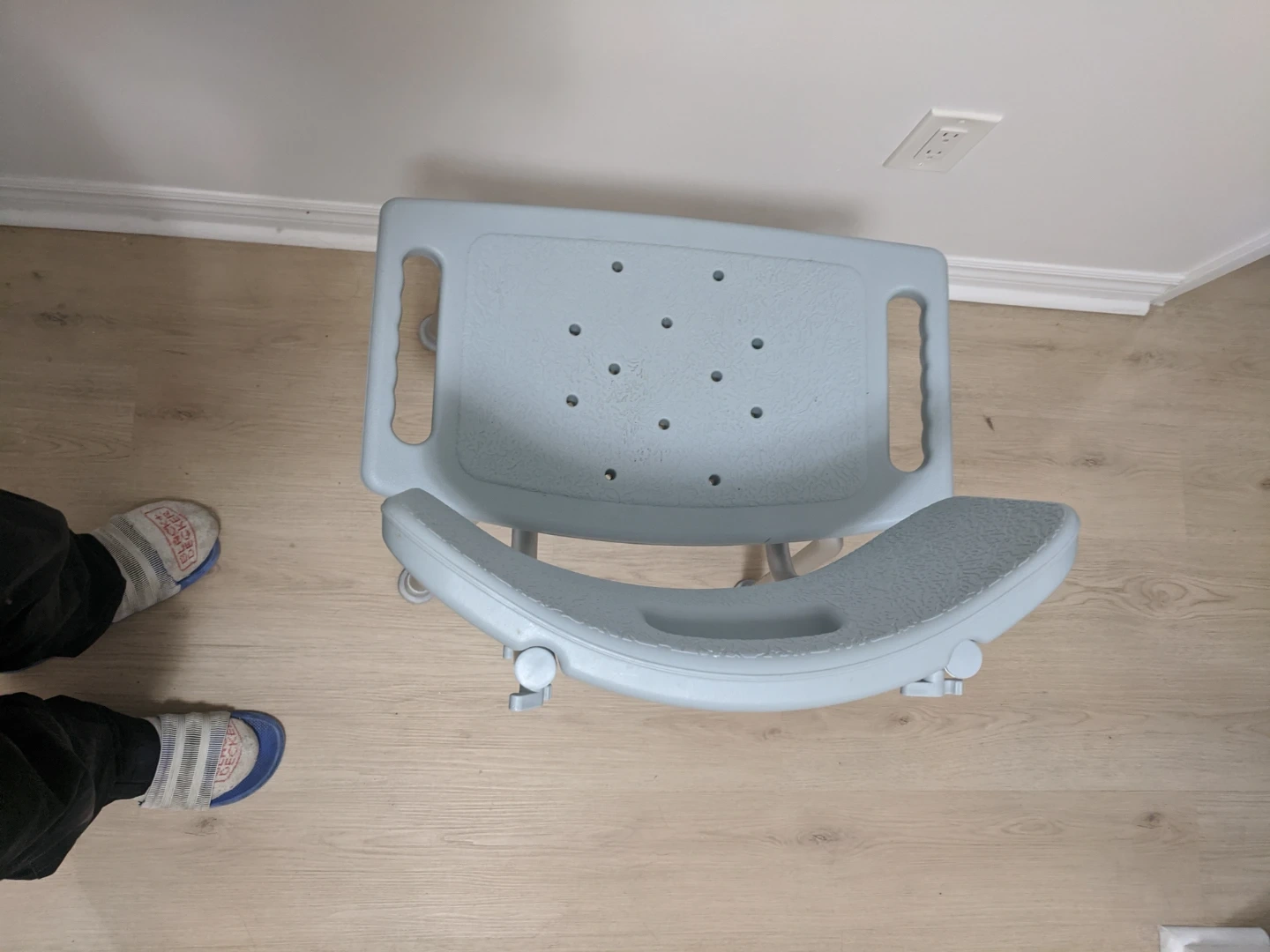 This shower chair stool is designed for safety and comfort in the bath or shower. It features adjustable height legs for a customized fit. The sturdy construction provides reliable support. Great for anyone needing a little extra stability in the washroom!