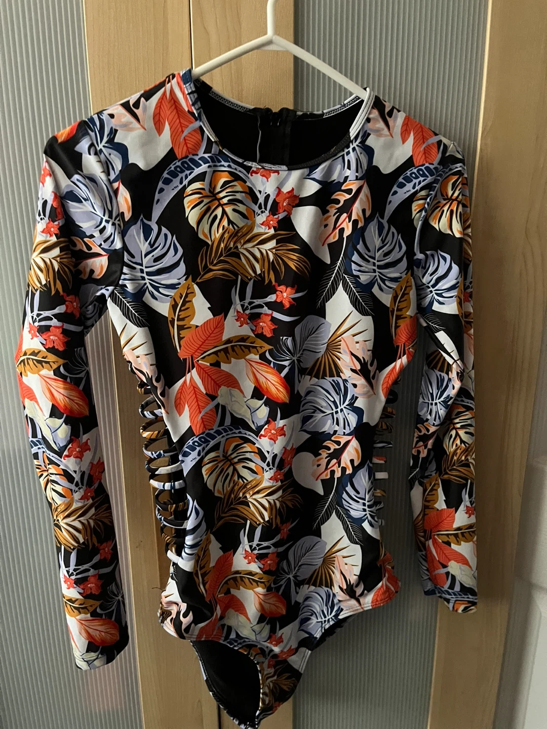 Long Sleeve Tropical Print Swimsuit, no tag, M
