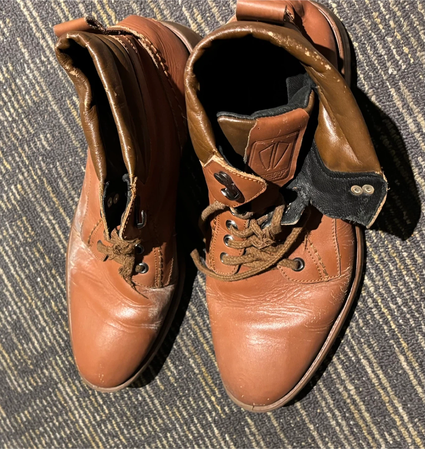 These are brown leather lace-up boots. They feature a stylish design with a comfortable fit. Perfect for casual wear or light outdoor activities.
