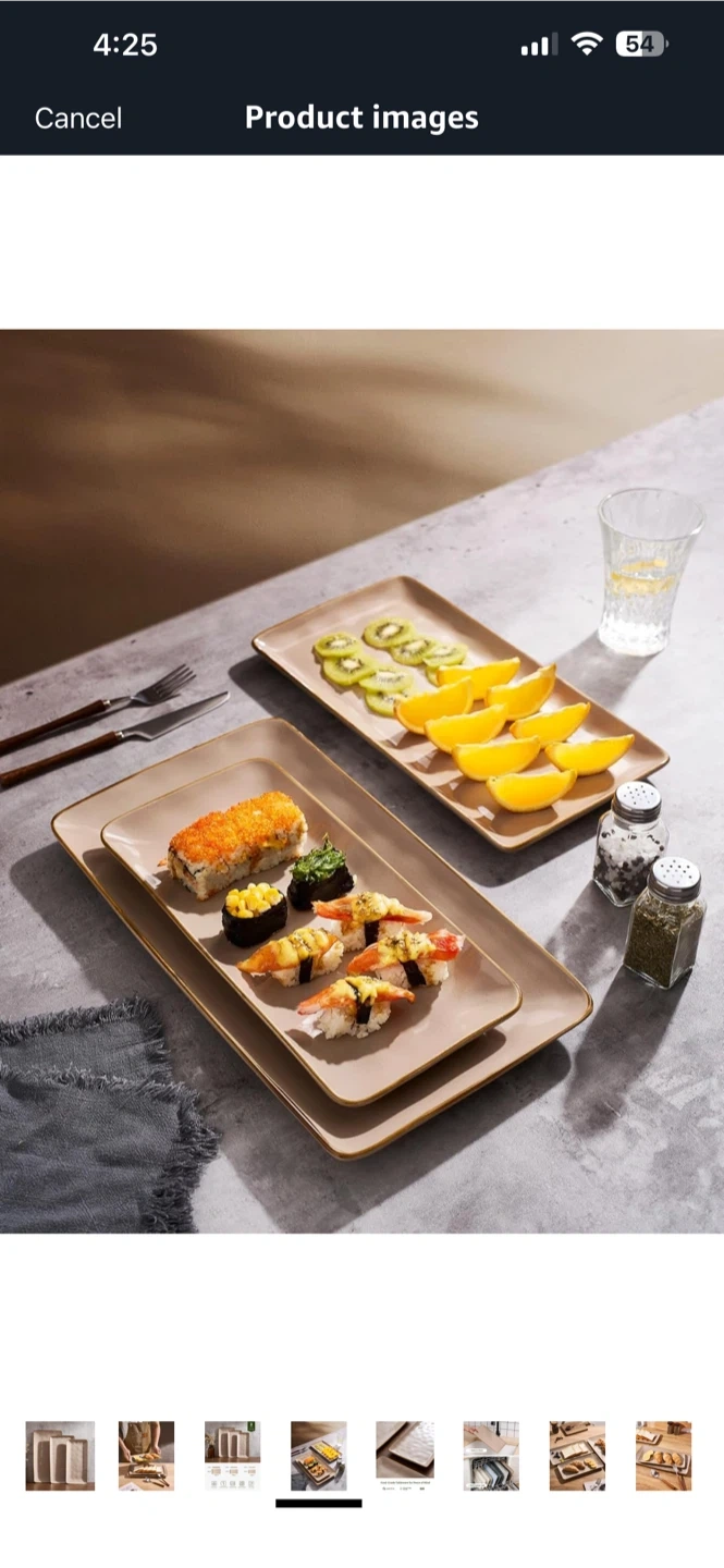 This set includes three rectangular serving platters in varying sizes. They're made from food-grade material and are microwave and dishwasher safe. These platters are great for serving appetizers, main courses, or desserts.