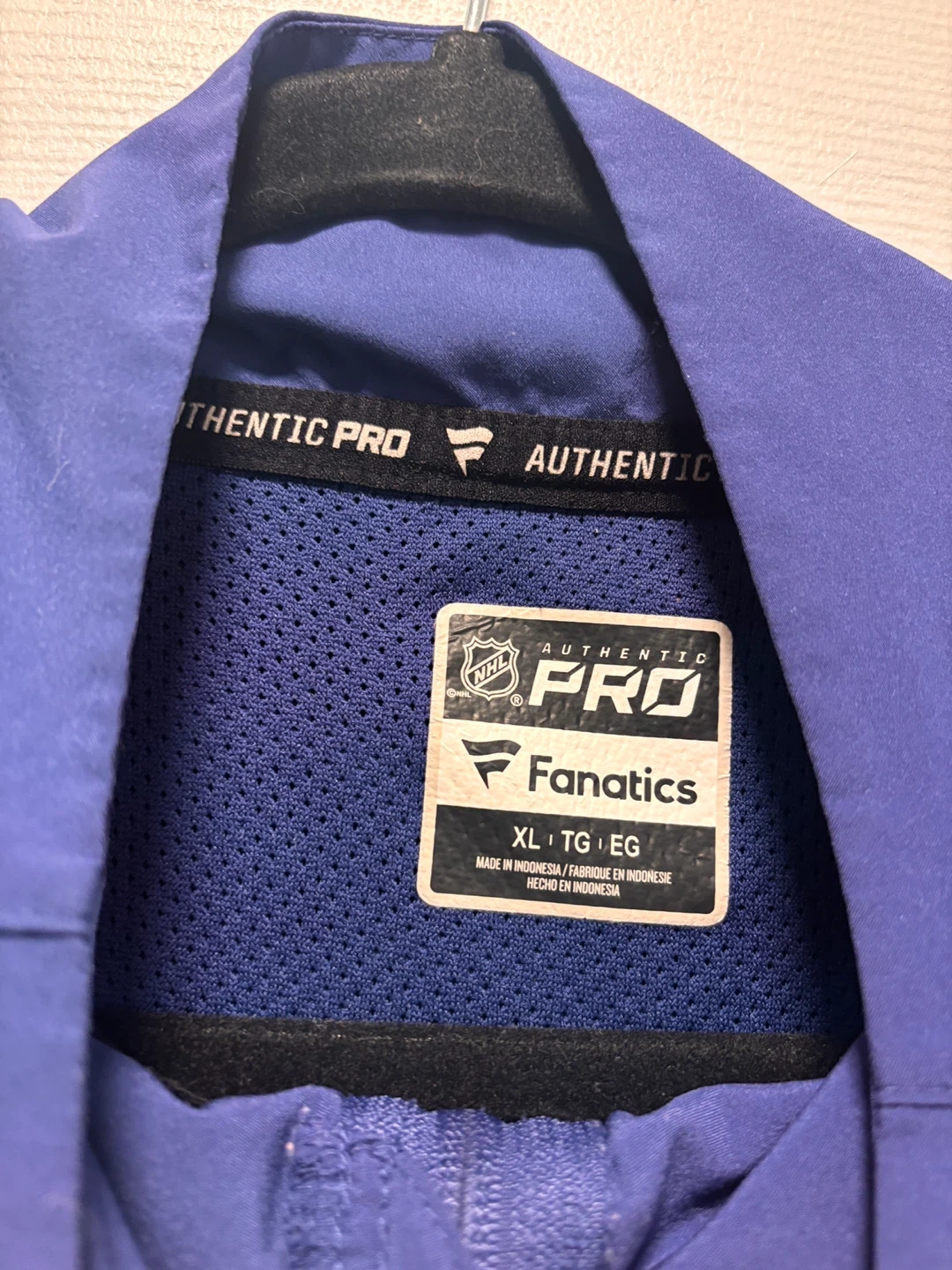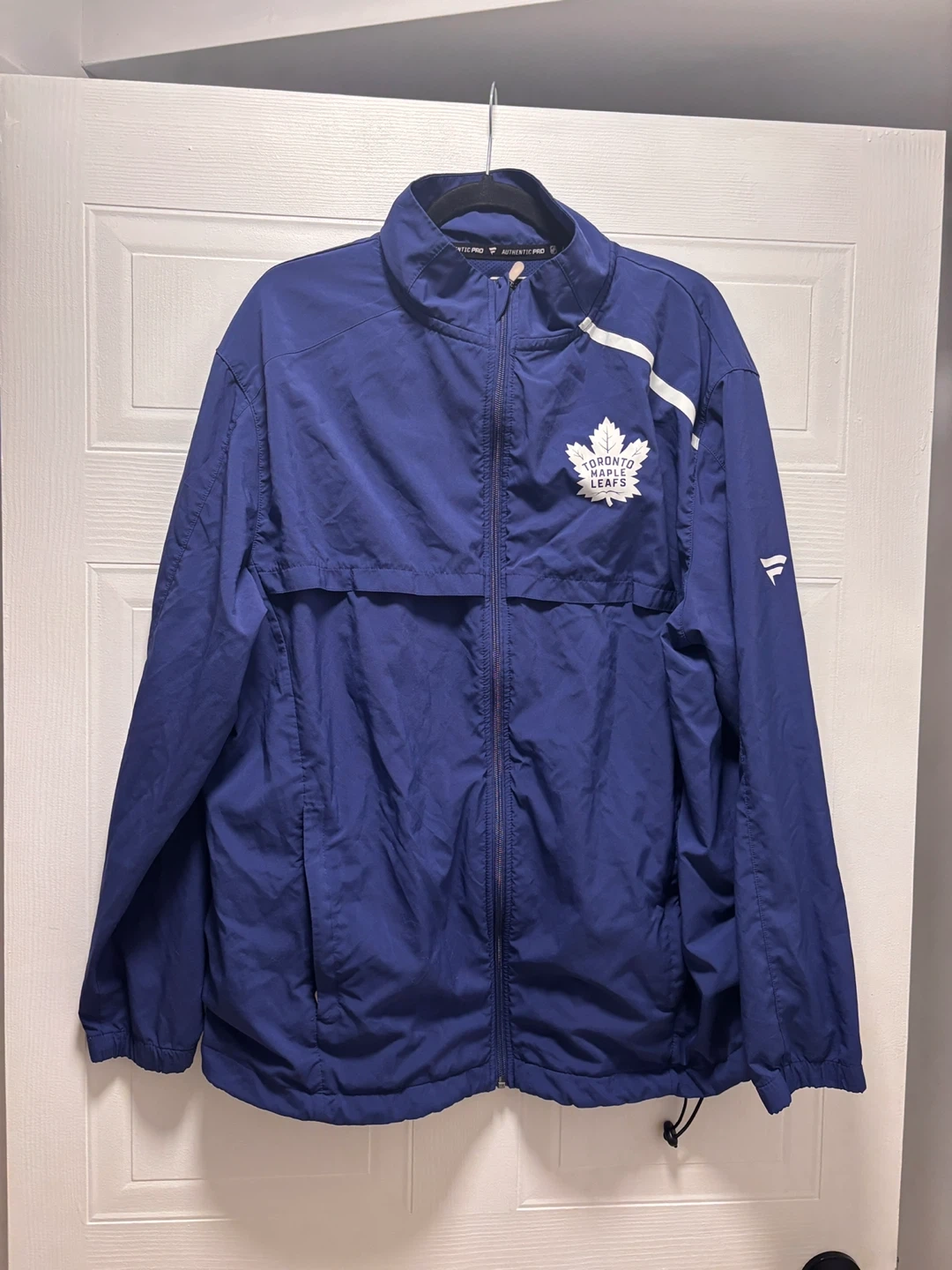 This is a Toronto Maple Leafs NHL Authentic Pro jacket by Fanatics. It's a size XL and made in Indonesia. The jacket features the team logo and NHL branding.