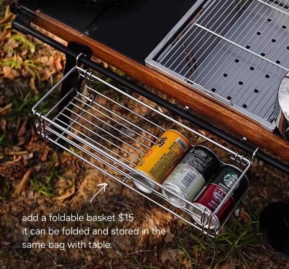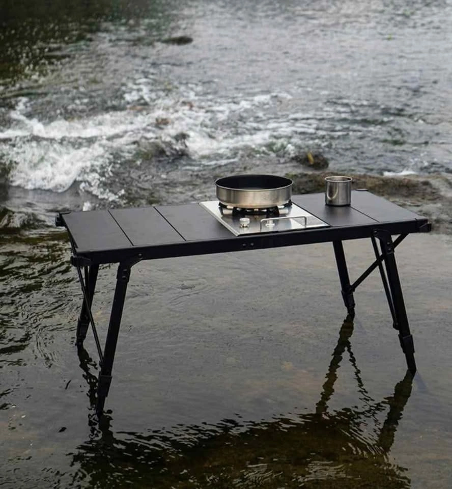This IGT camping table features modules to create multiple combinations. Use it with our charcoal grill and portable gas stove to meet different cooking needs. The table has an easy folding structure, allowing you to set up in seconds. The packed size is 18x12x55cm, making it compact and easy to transport. It has a convenient hanging rod for tableware or kitchenware and a stove module compatible with our camp stoves and faucet unit. Made of lightweight, weather-resistant 6063 aluminum alloy with superior durability and stability, it weighs only about 8 lbs. Perfect for car camping, tailgating, picnics, barbecues, RV trips, patio, and beach use.