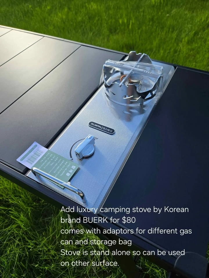 BRAND NEW IN BOX CAMPING TABLE WITH BAG ONLY. Stove and other accessories can be purchased separately.