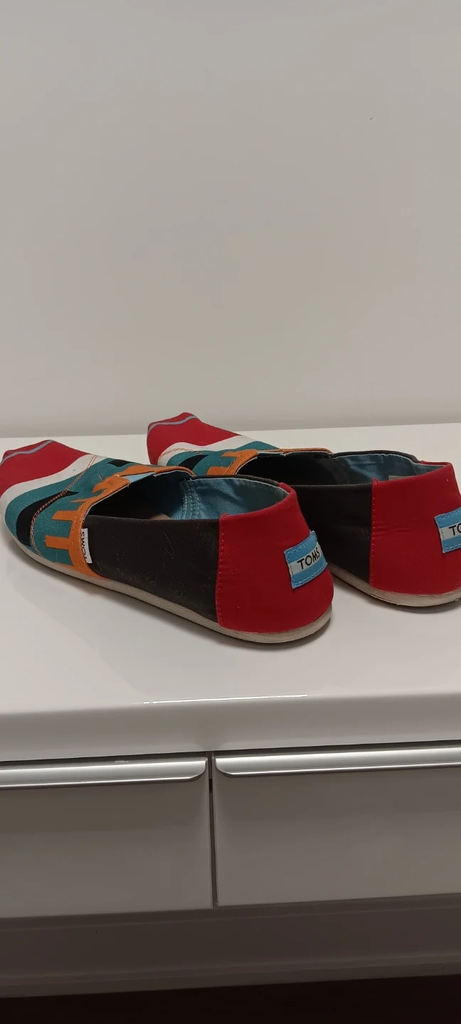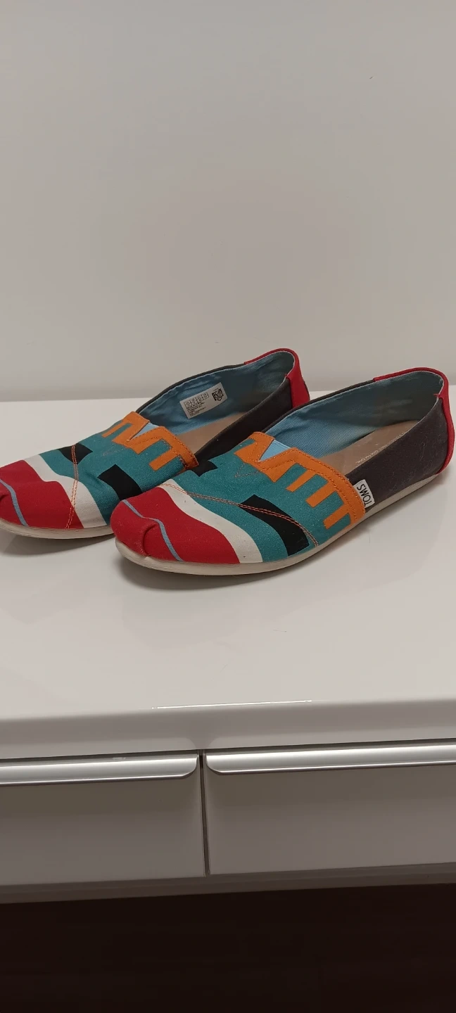 These TOMS women's Alpargata shoes feature a vibrant geometric pattern. They're made with a canvas upper and a comfortable textile lining. These slip-on shoes are great for casual wear.