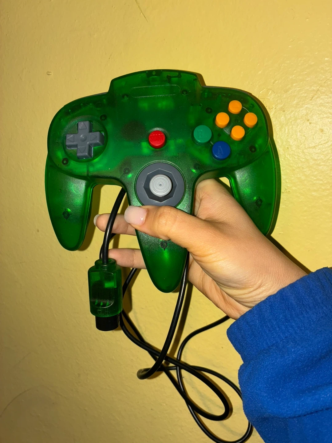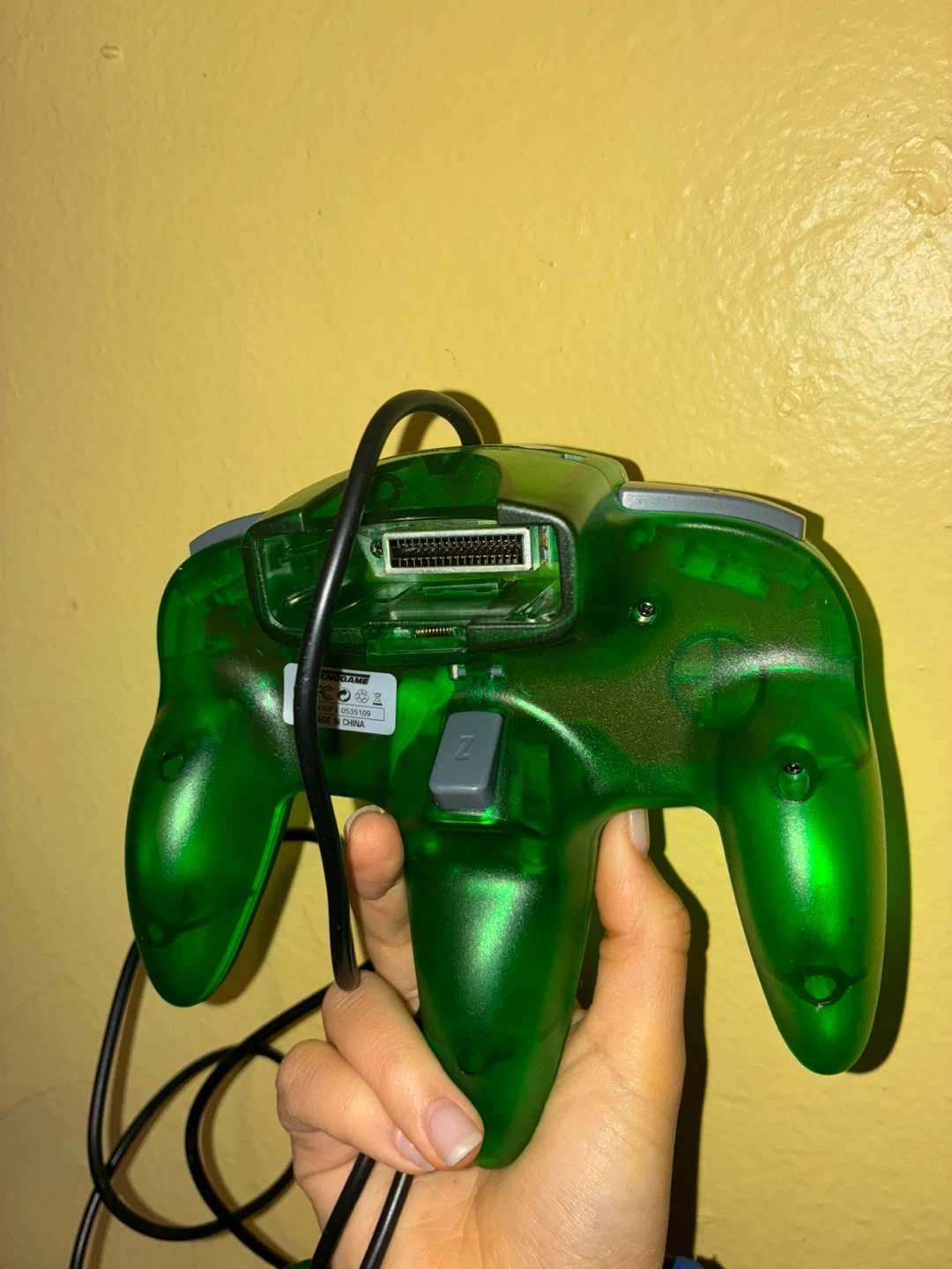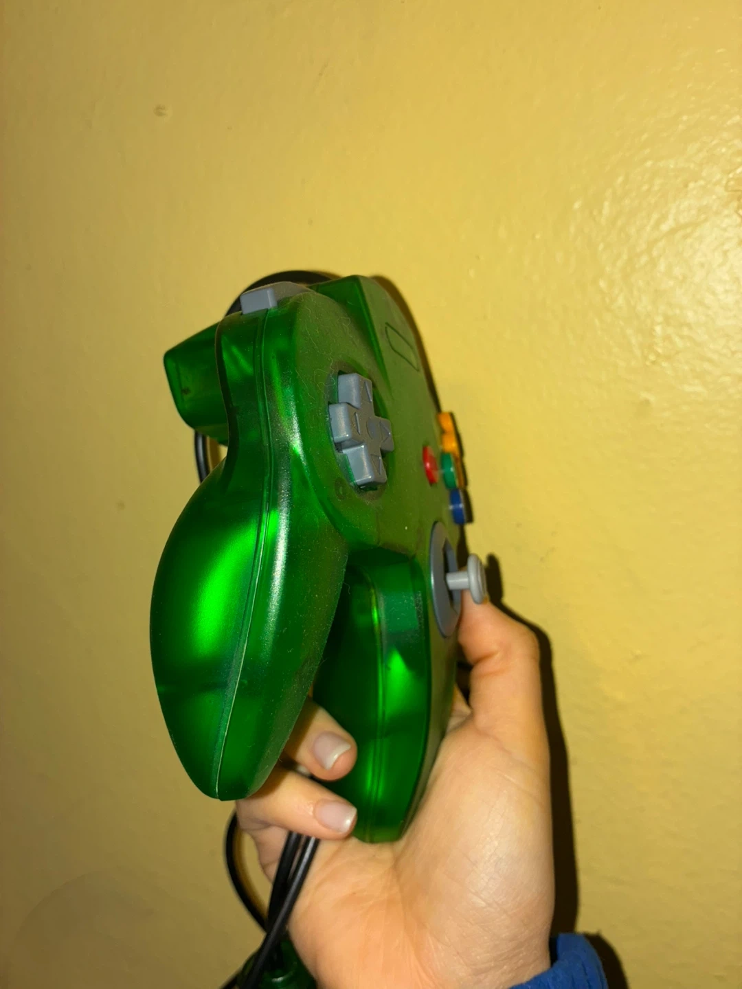 This is a translucent green controller for the Nintendo 64. It's compatible with the N64 console and features the standard button layout. Great for replacing a lost or broken controller!