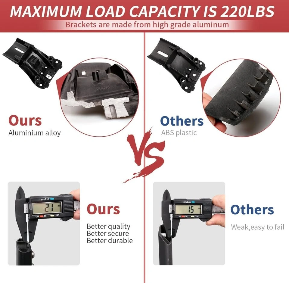 Heavy duty and aerodynamic bars, rated for 220 pound loads evenly distributed.