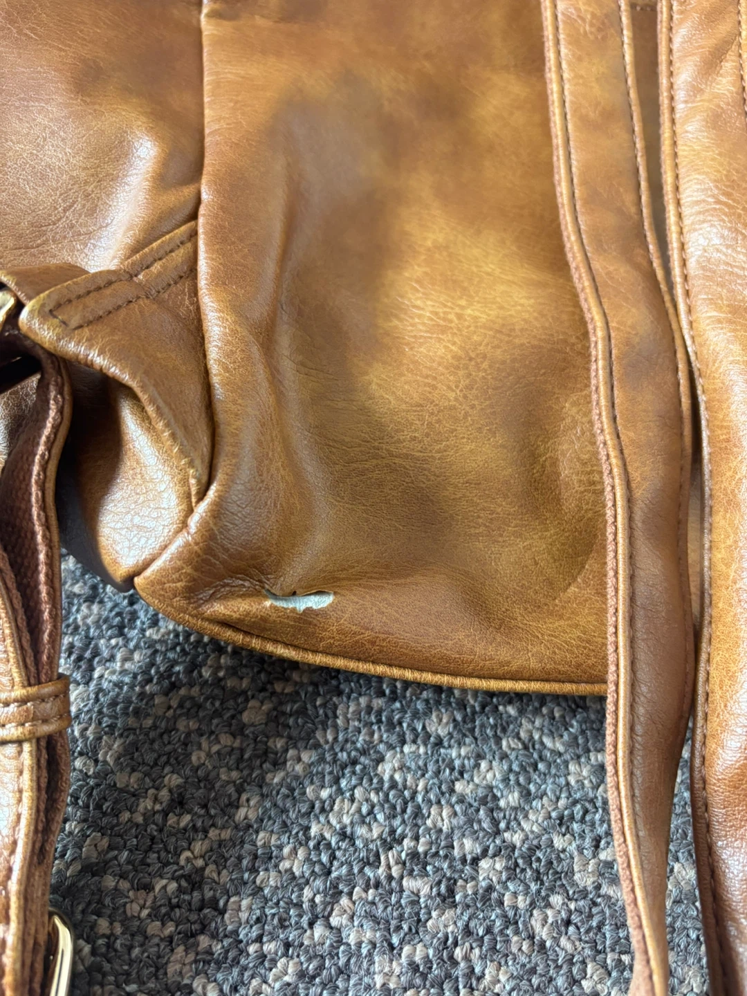 A slight mark in the material at the back bottom due to usage. And inside pocket is slightly ripped.