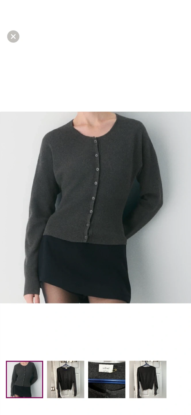 This is a Wilfred Golightly Cardigan in Heather Galaxy, size L. It's a dark grey colour. The material is a soft knit.