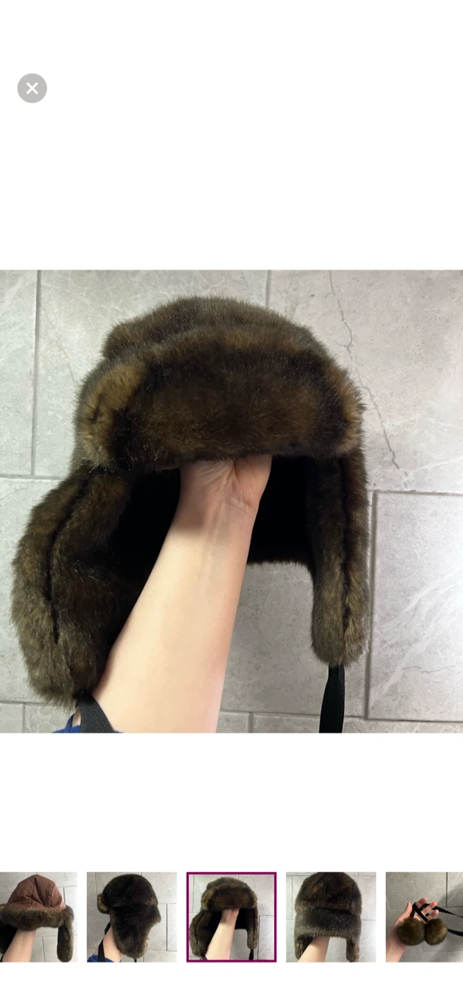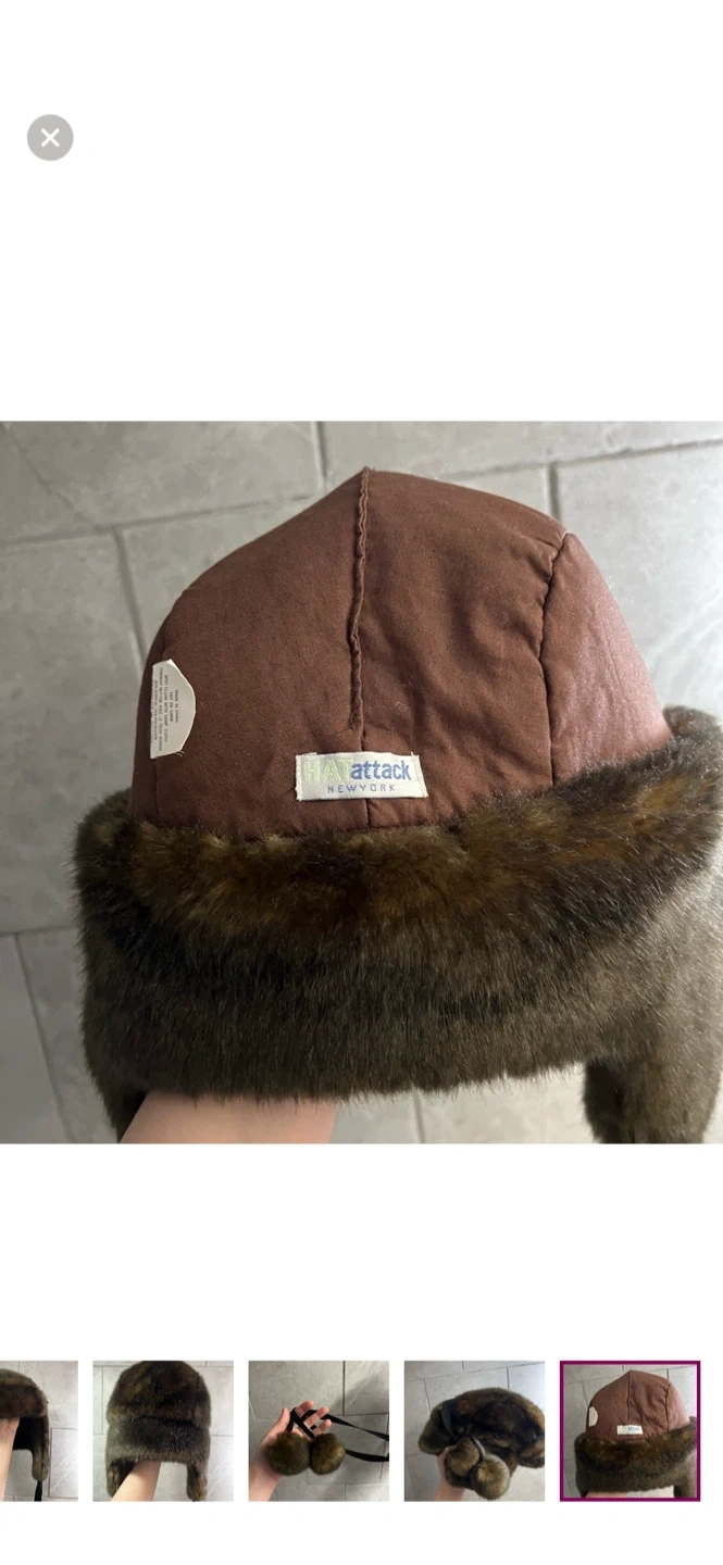 This trapper hat is designed for warmth and style. It features a faux fur exterior and lining for cozy comfort. The ear flaps can be tied up or fastened under the chin for versatile wear.