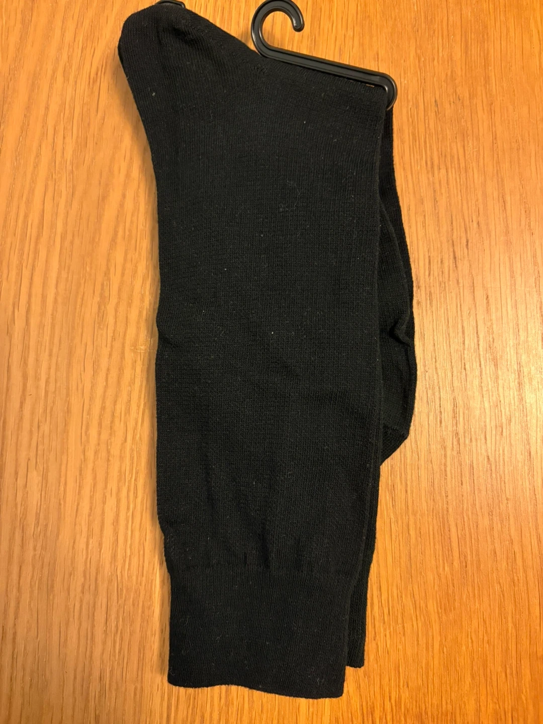 These are black crew socks, perfect for everyday wear. They're made from a comfortable knit material. These socks are useful for keeping your feet warm and protected.