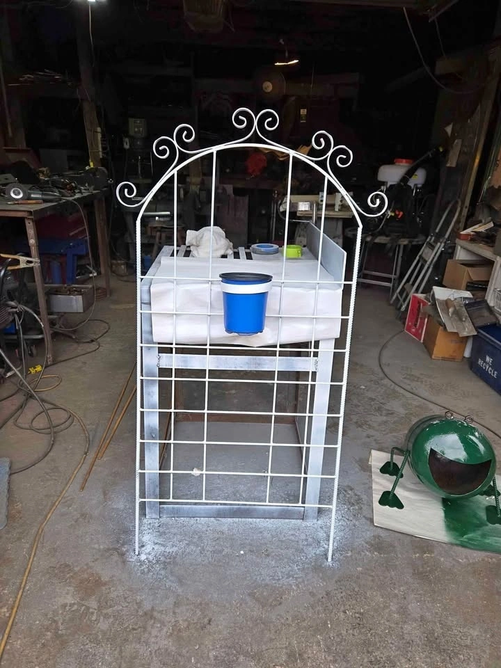 Add a touch of natural beauty to your outdoor space with this handmade metal garden trellis and plant holder. It's the perfect way to display your favorite climbing plants or flowers and comes with a 1-gallon pot. I painted it white so you can match your decor. Handmade from recycled materials. Includes a 1-gallon pot. If this ad is still up, it's still available. Check out my other listings for more unique pieces!