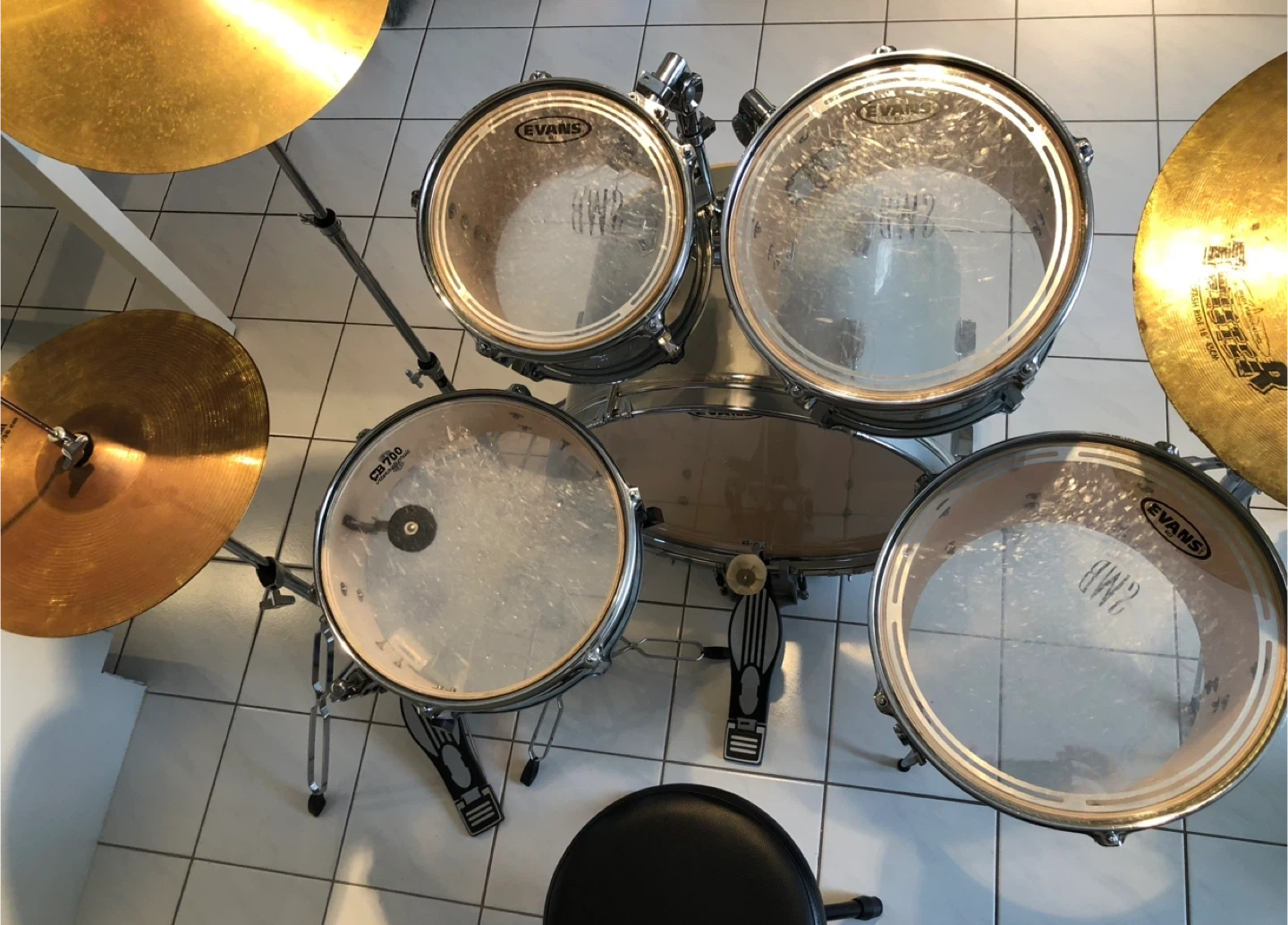 Shells: 10”, 12”, 14” floor tom, 22” bass - all with Evans EC2 heads.