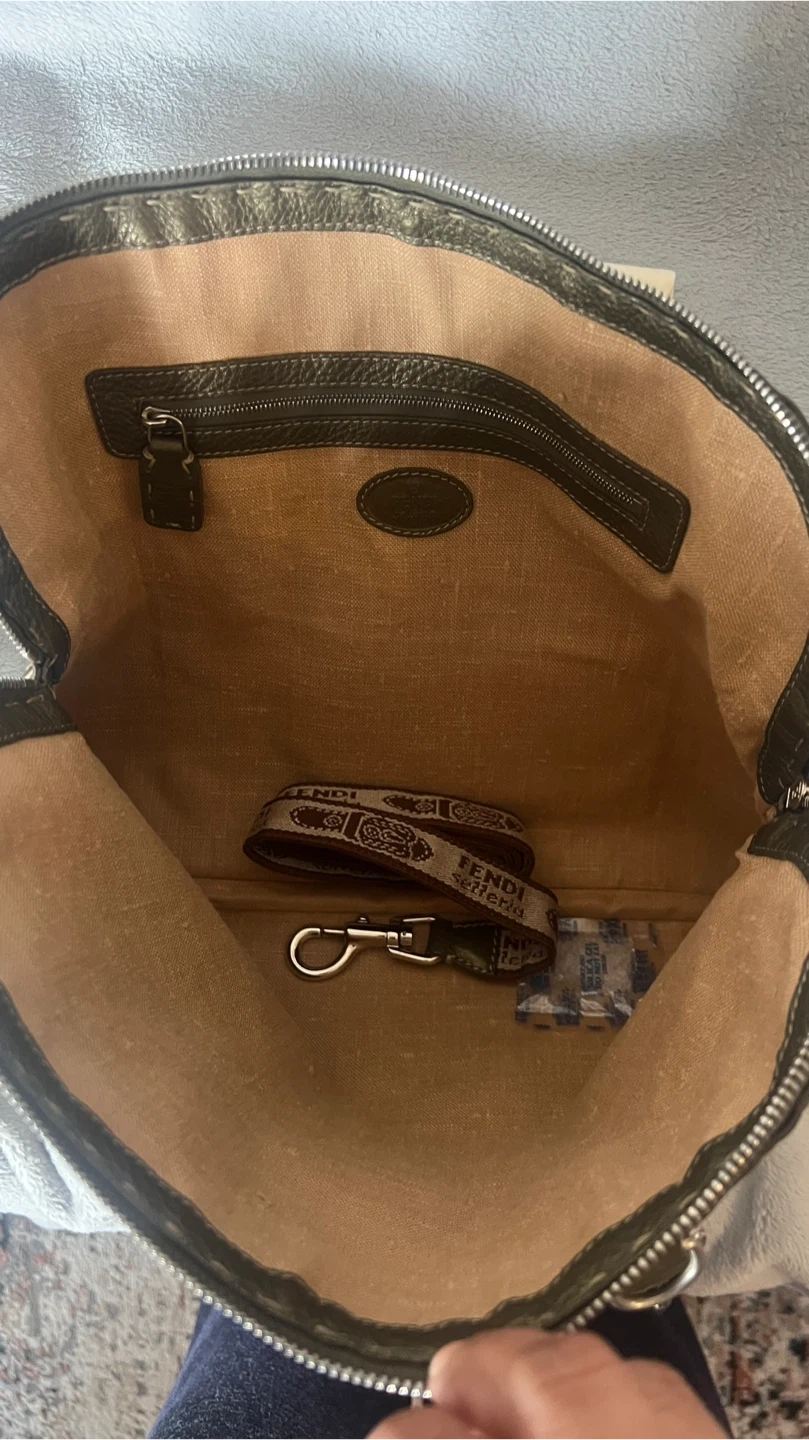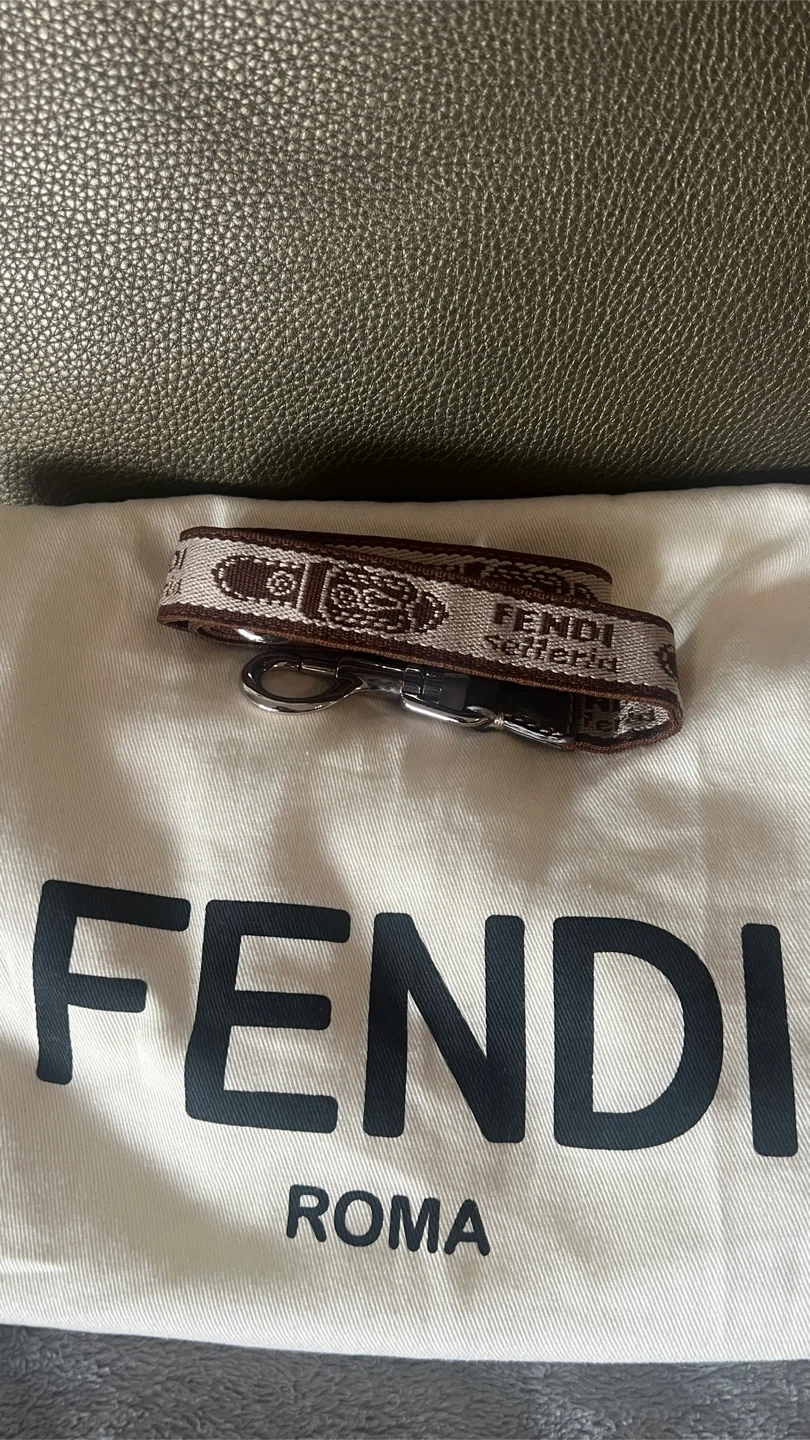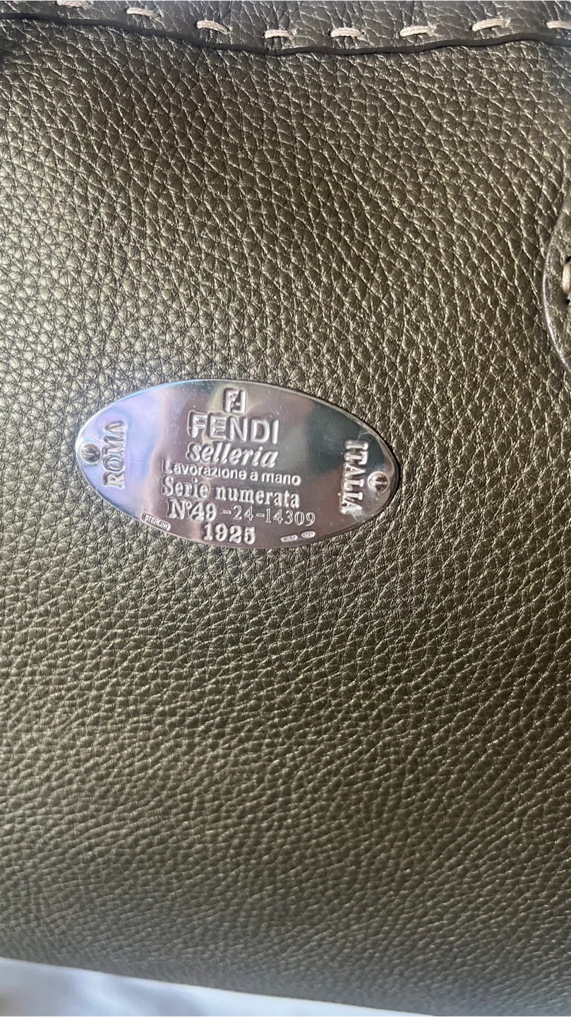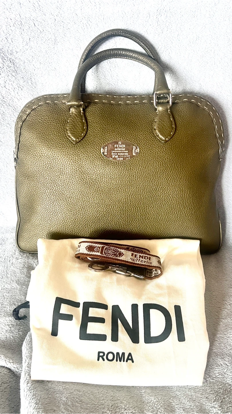 This is a Fendi Selleria bag. It's made of leather. Includes dust bag and a detachable strap. In very good condition, no scratches.