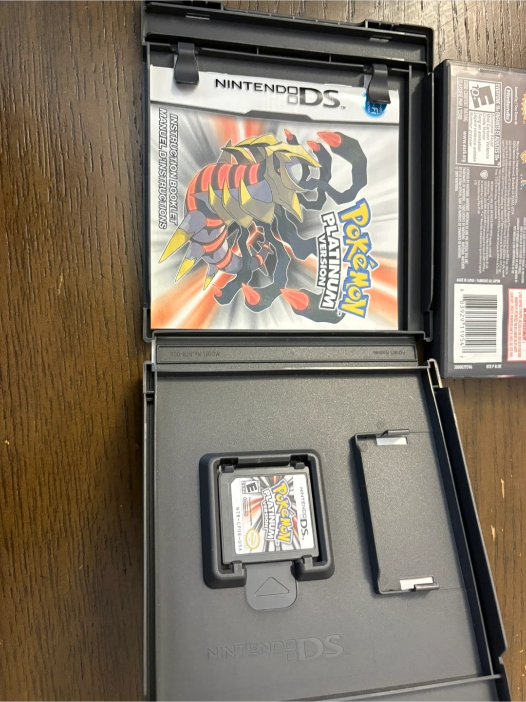 Nintendo DS Pokemon Platinum Version game cartridge. Includes the original game case and instruction booklet. This game is rated E for Everyone.