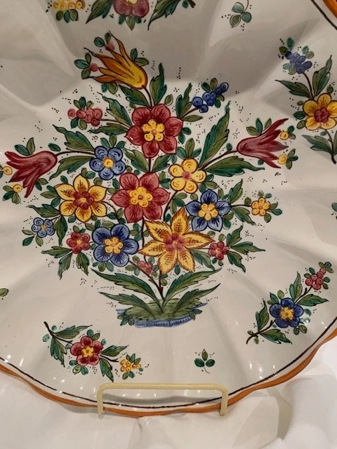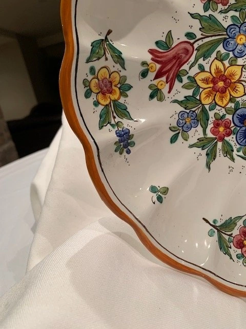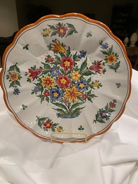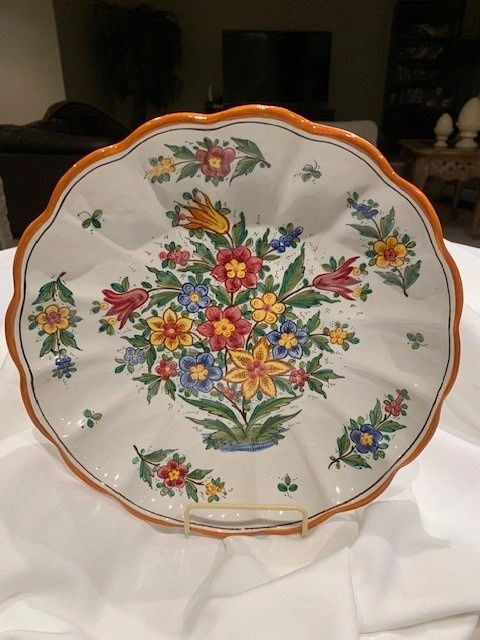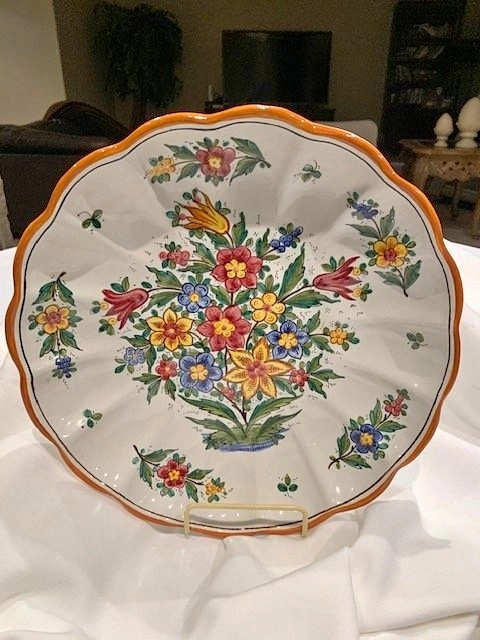 Vintage Ceramic Wall Plate from Perugia, Umbria, Italy. Features stunning floral details and delicate scalloped raised edges. Has holes for wall mounting (see pictures 5 & 6). In pristine condition with no chips, cracks, or crazing. From a smoke-free, pet-free home. Located in Richmond Hill near Bathurst and King Rd. Cash only.
