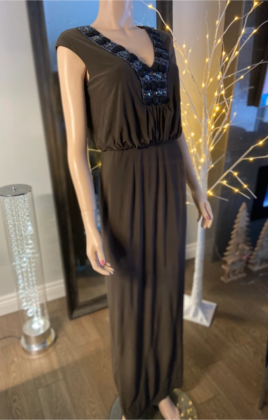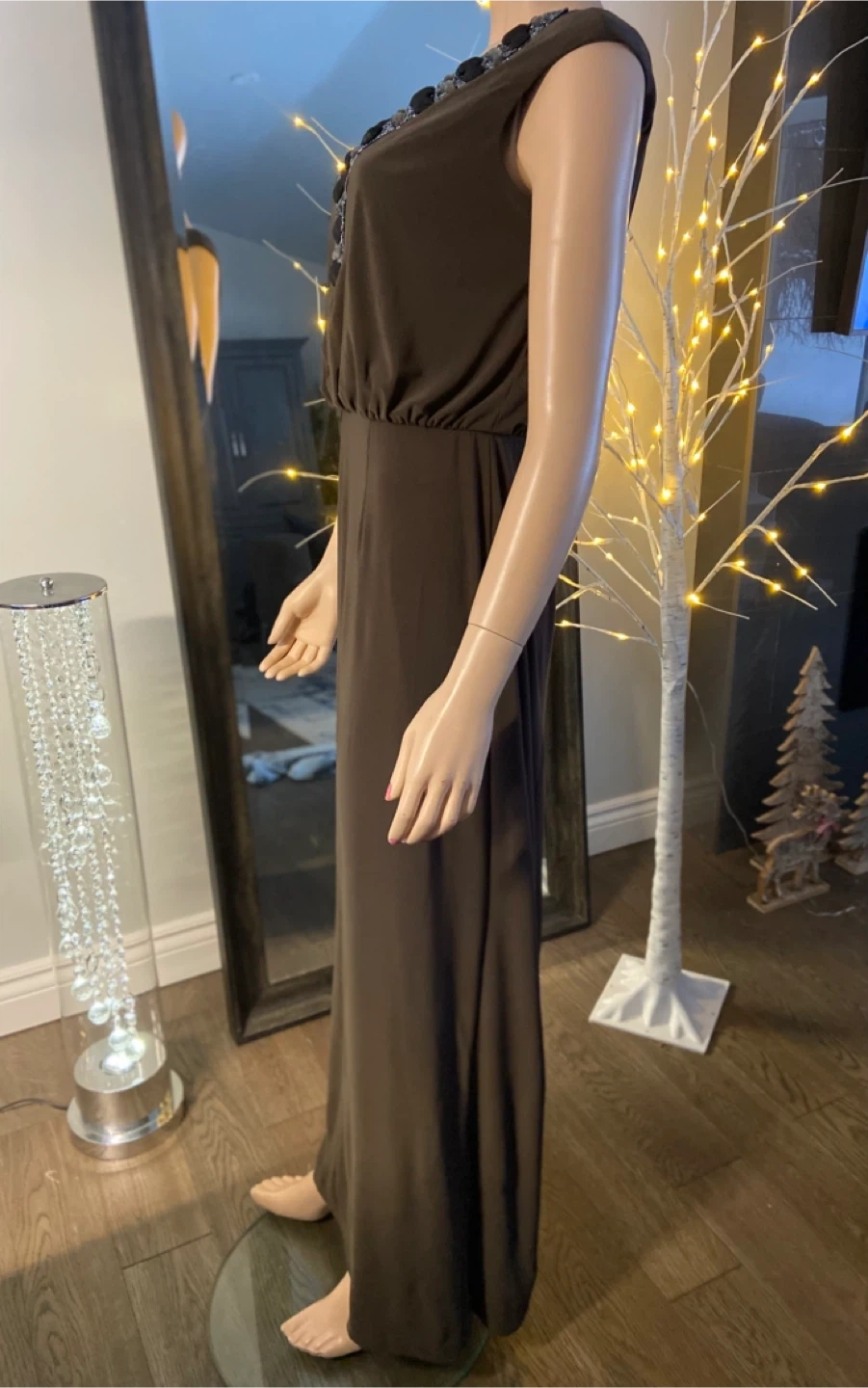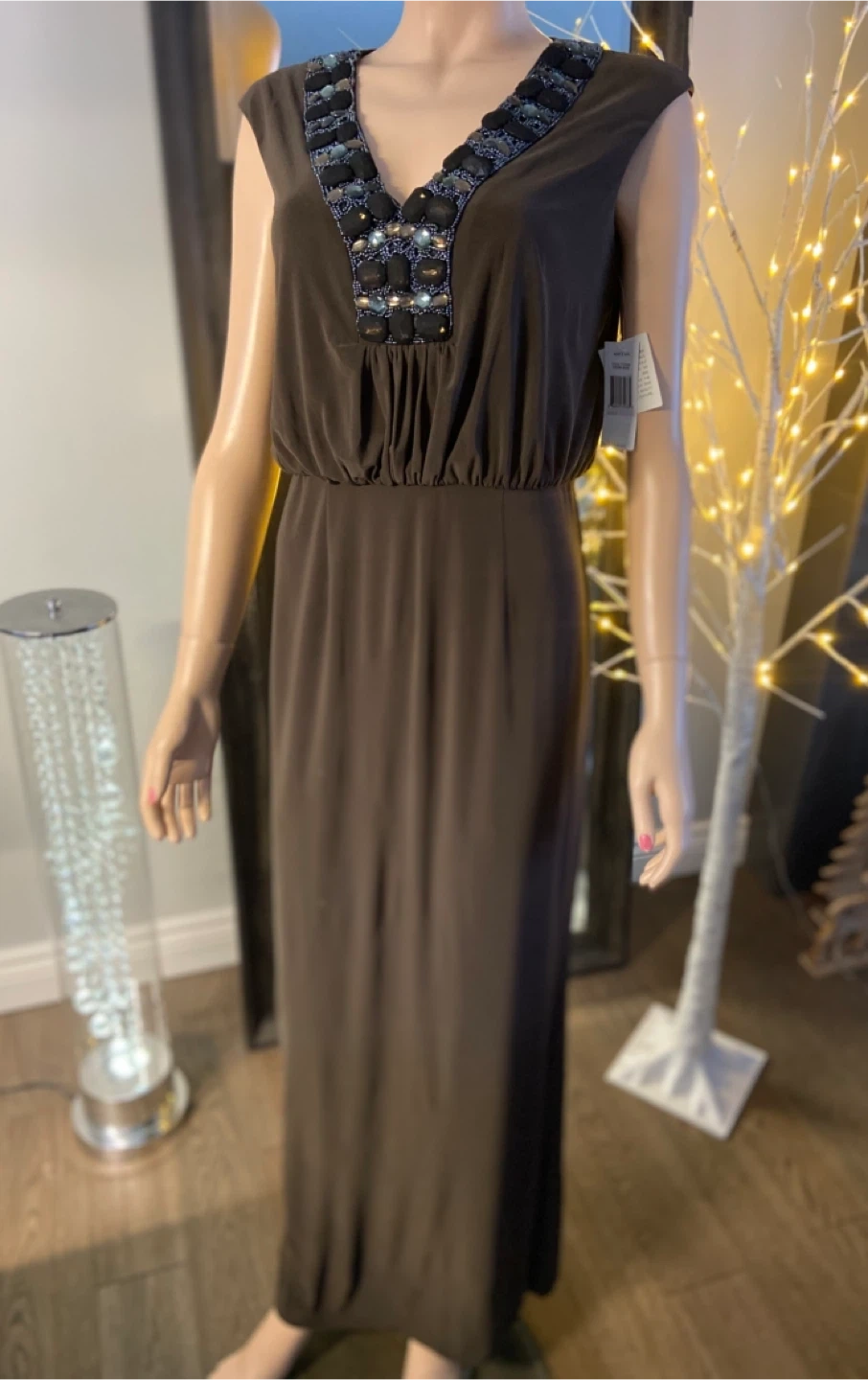 NWT: Alex & Eve Brown Embellished Maxi Dress Size 6