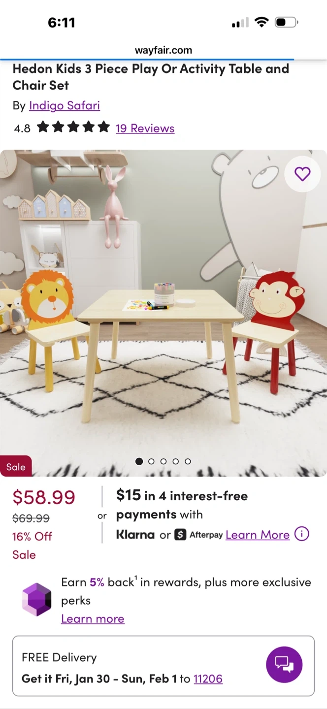 This is the Hedon Kids 3 Piece Play Or Activity Table and Chair Set by Indigo Safari. It includes a table and two chairs, each with a fun animal design. This set is made of wood.