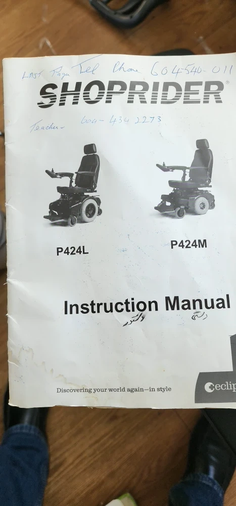 Shoprider P424L power wheelchair with joystick control. Includes charger. Good for mobility assistance.$500