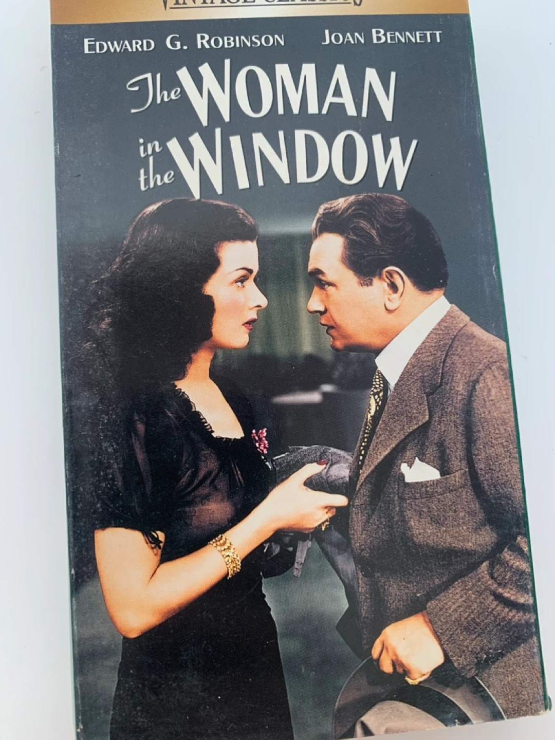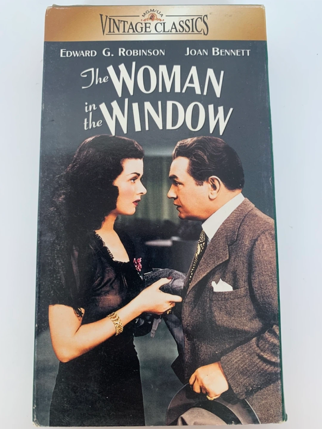 This is the VHS release of the classic film "The Woman in the Window", starring Edward G. Robinson and Joan Bennett. It's a thrilling film noir directed by Fritz Lang. Contains the original theatrical trailer.