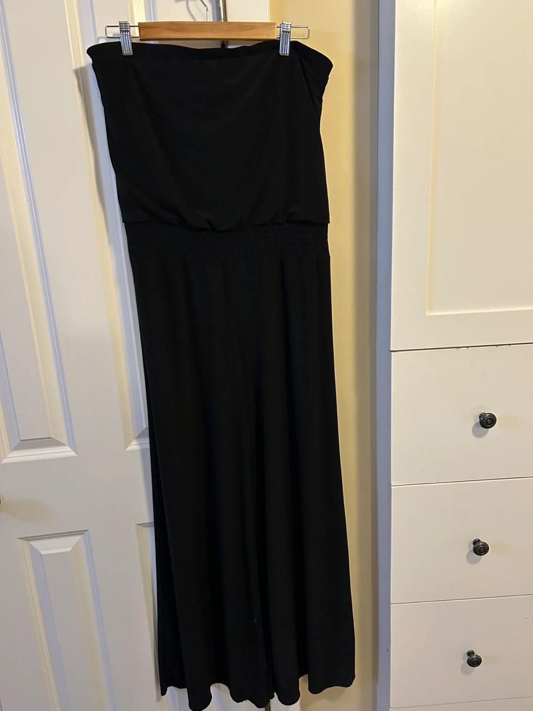 Buy & SellWhite House Black JumpsuitWhite House Black Jumpsuit$35This is a strapless jumpsuit from White House Black Market. It has a smocked waist and wide legs. Size medium.ConditionLike newTallaMBrandWhite House BlackWHERE TO MEET2511 18 street nwView MapSELLERverifiedBettinaCapitol Hill851 review0 chats·0 favorites·8 viewsSEND CHAT TO SELLERHi Bettina! I’m interested in your listing.Hi Bettina! I’m interested in your listing.Get the Karrot app to chatSign In to chat